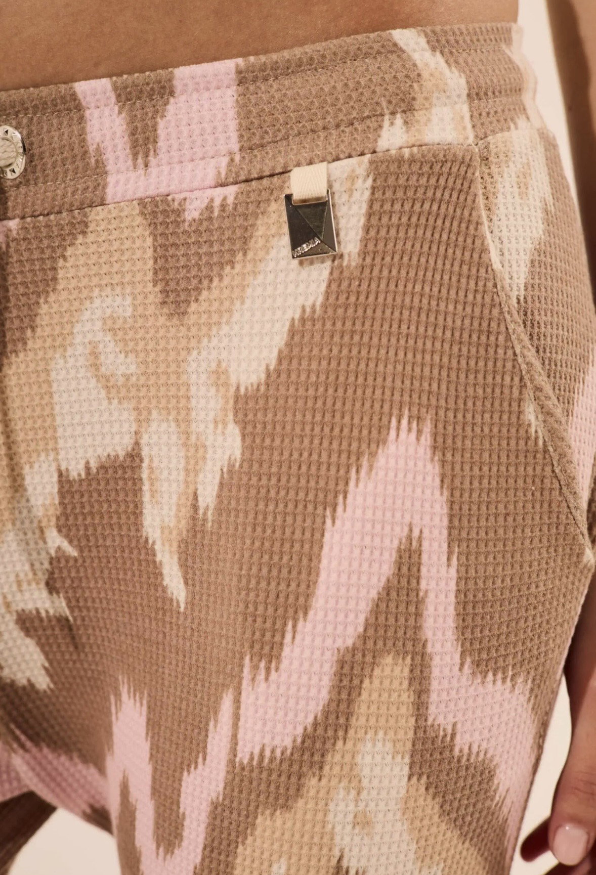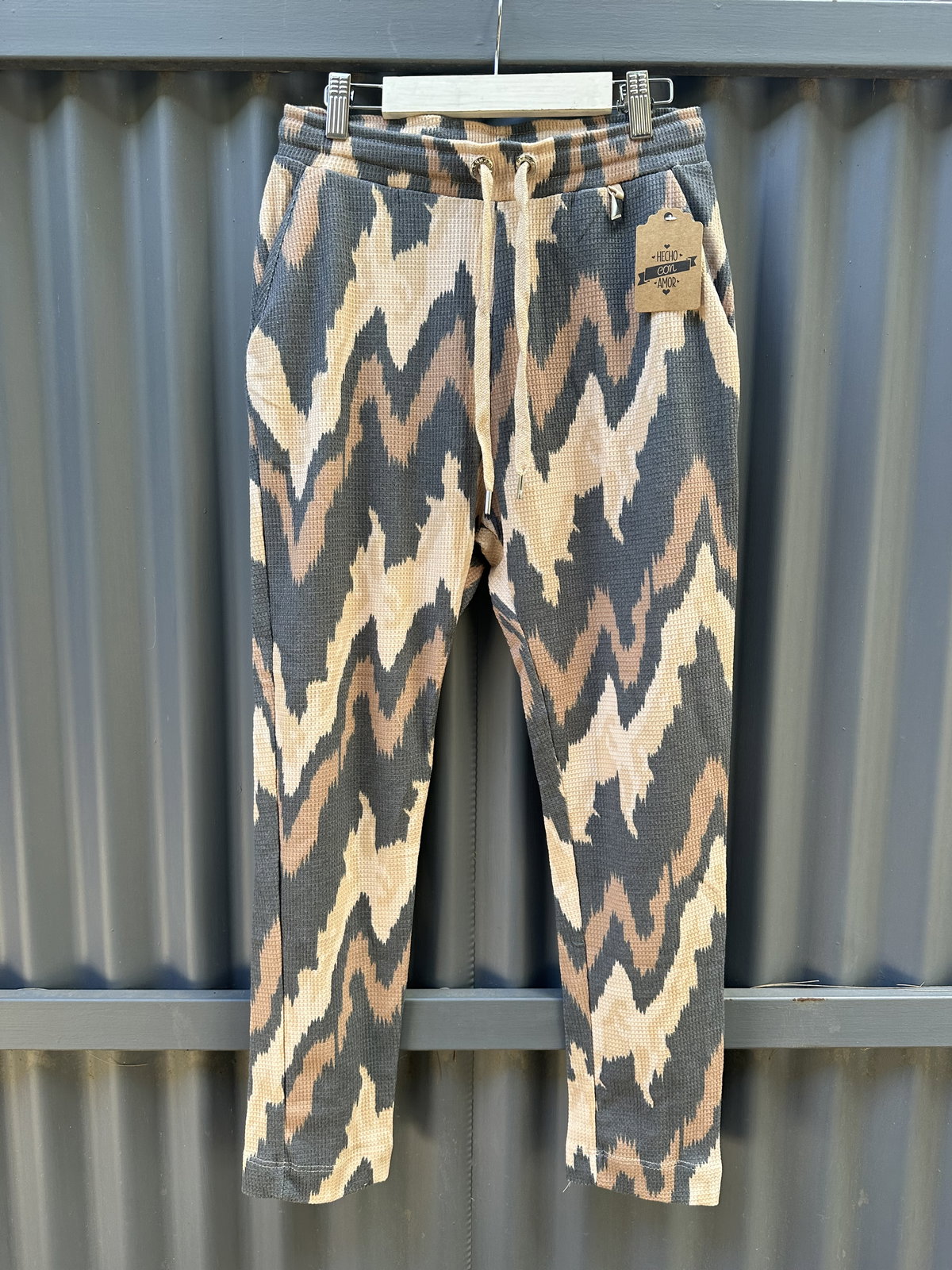Comodidad que se nota… y estilo que también. Esta babucha de tela waffle estmpa zigzag tiene una textura suave y liviana que la hace súper cómoda para usar todo el día. Su calce relajado, con cintura elastizada y cordón de ajuste, se adapta y estiliza.