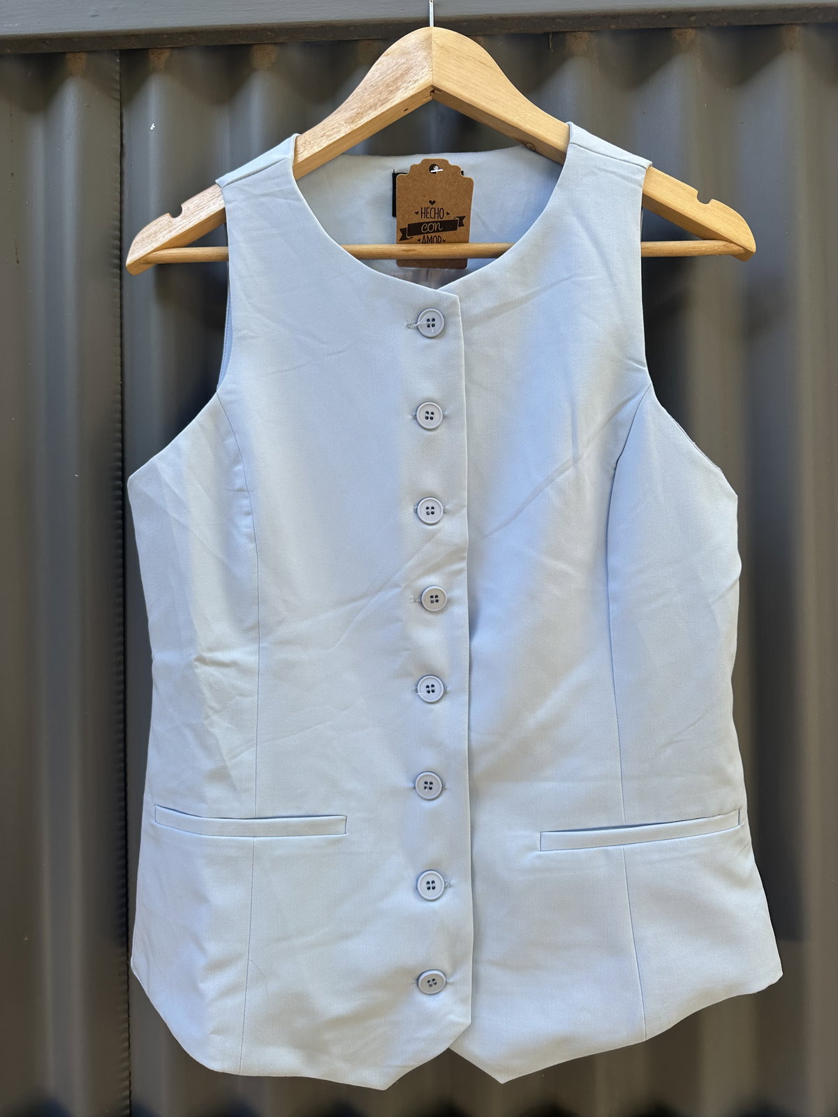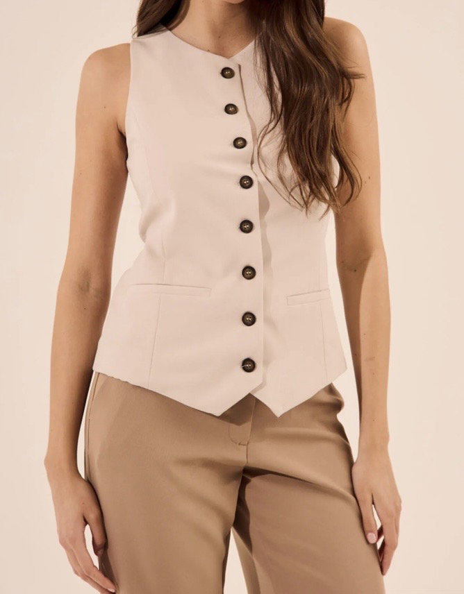 Un clásico con actitud. Este chaleco sastrero estiliza la silueta y suma ese toque elegante que transforma cualquier look. Los botones frontales y la tira regulable en la espalda permiten ajustar el calce para que quede perfecto.