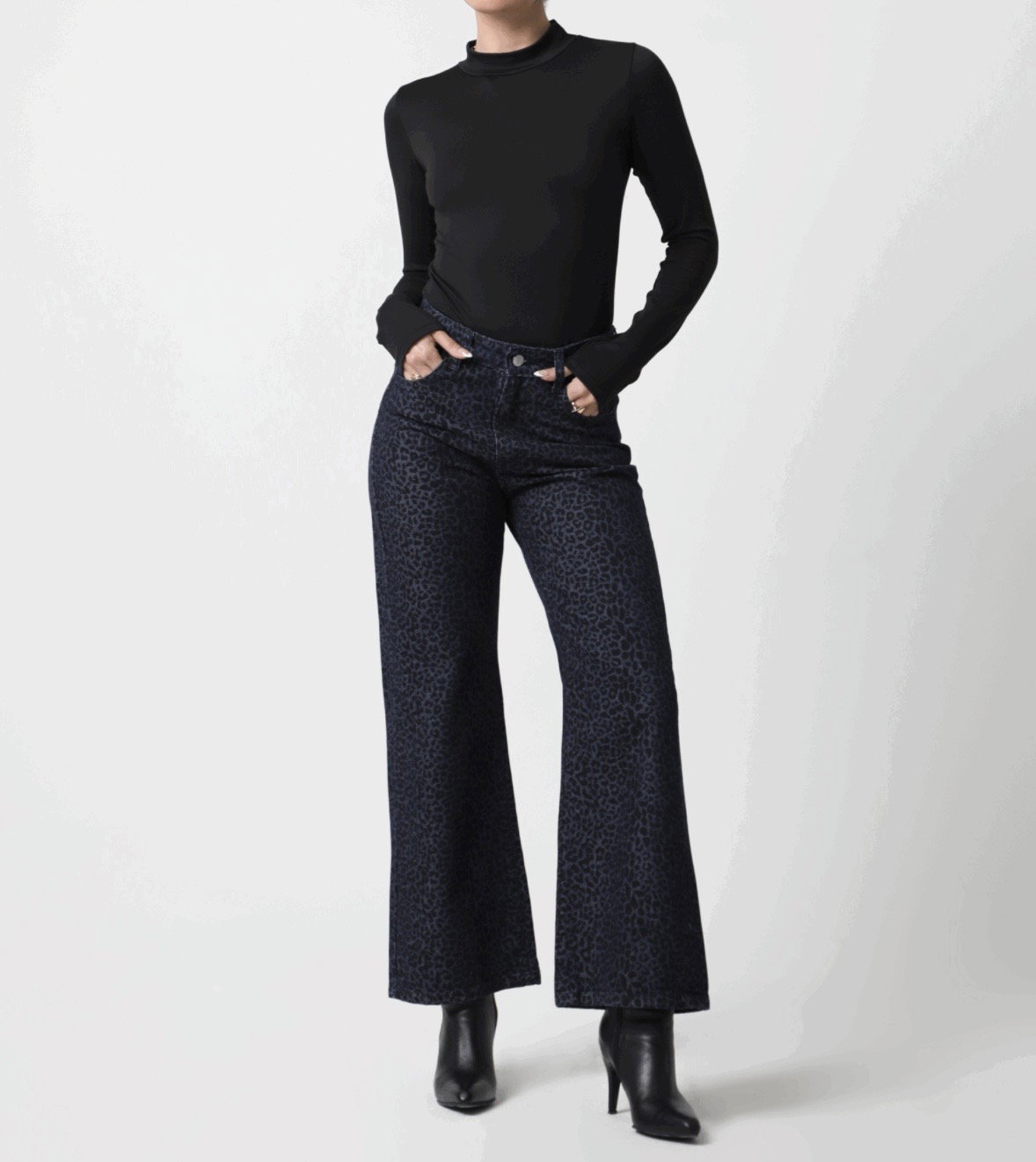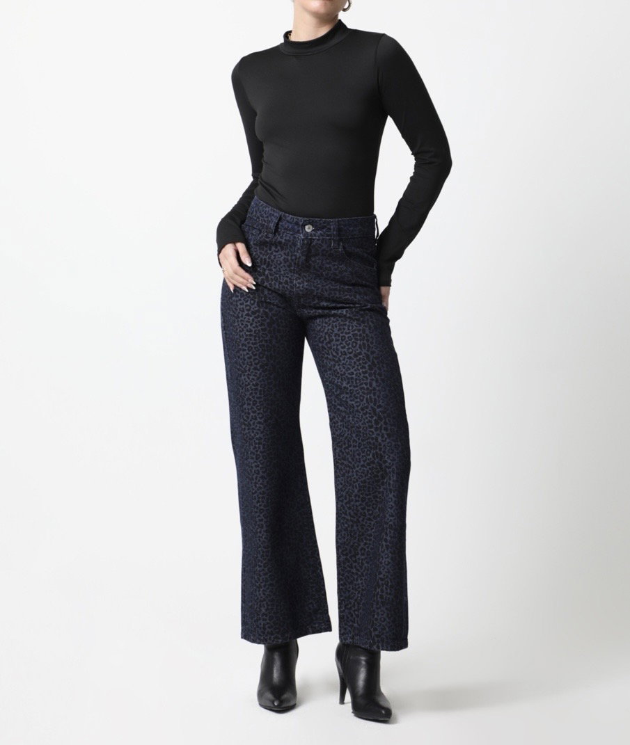 Una perlita para las que aman los jeans con personalidad. Este modelo wide leg con print animal sutil combina la fuerza del estampado con una silueta amplia y moderna.