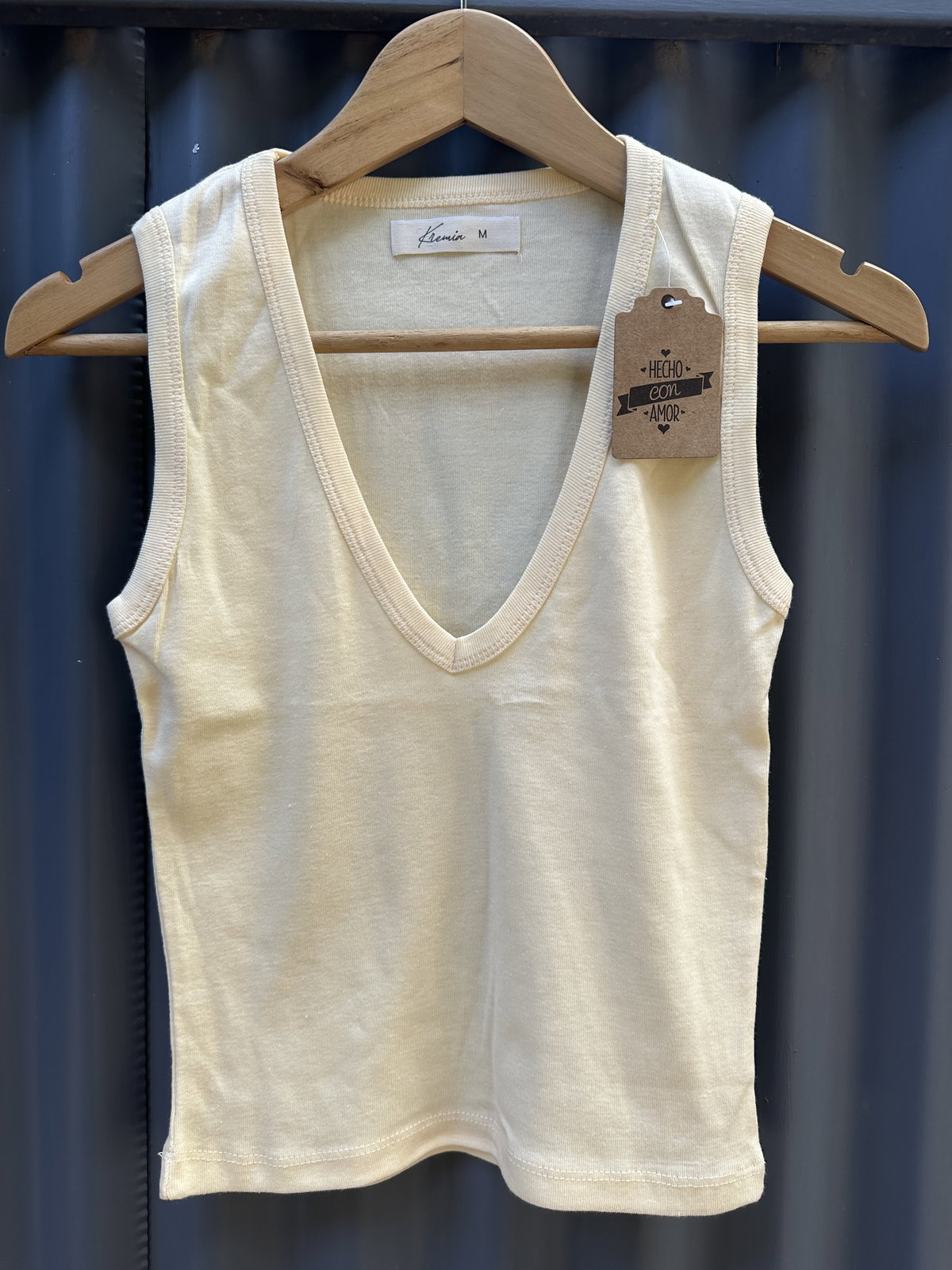 Simple, fresca y de esas que siempre quedan bien. Confeccionada en algodón suave que se adapta al cuerpo con un calce cómodo y natural. El escote V le suma ese toque femenino que estiliza sin esfuerzo.