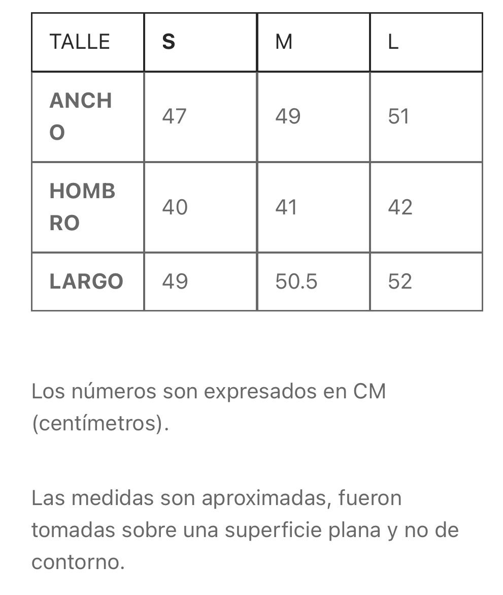 📏 Tabla de medidas en la ultima foto