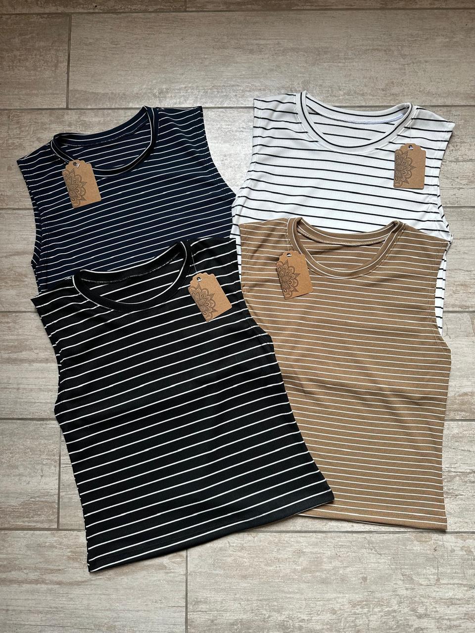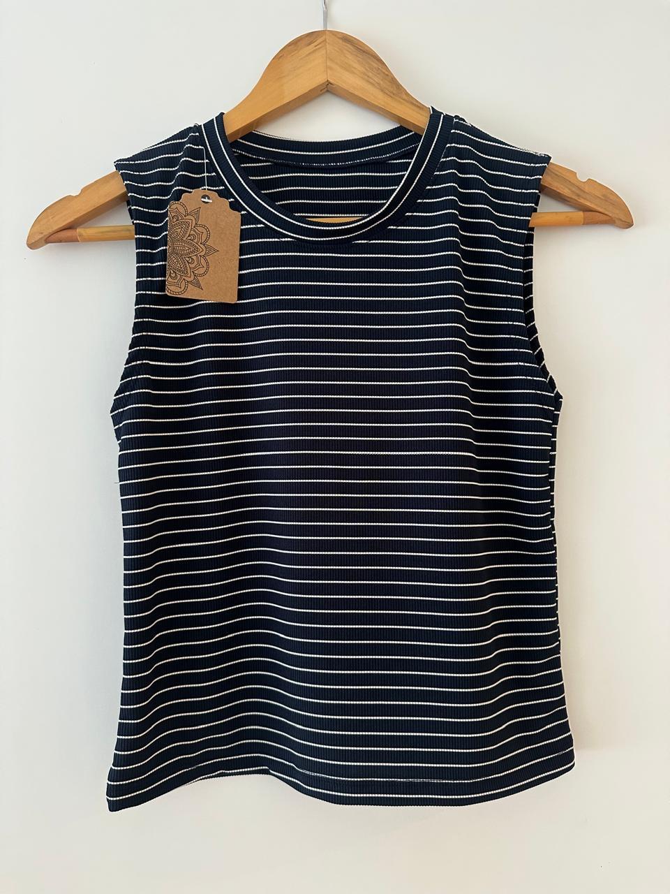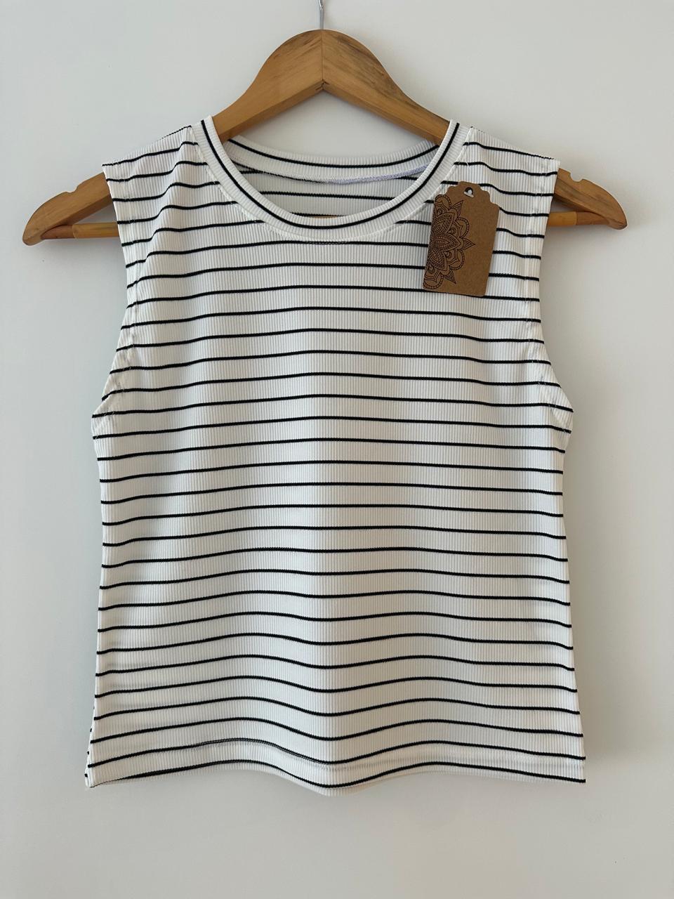 Musculosa de morley suave que se adapta al cuerpo y realza la silueta con un calce cómodo. Las rayas le dan ese aire fresco y canchero que nunca pasa de moda.