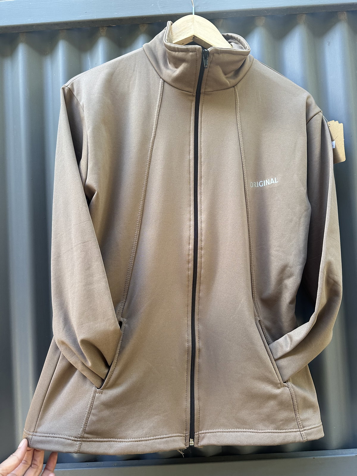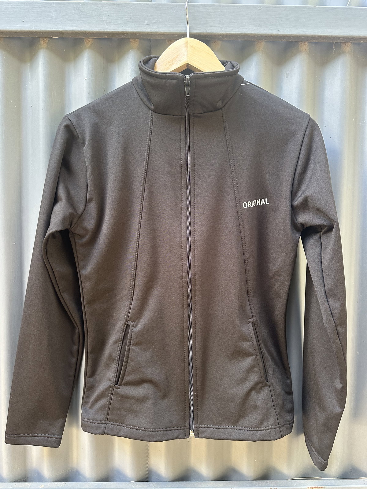 CAMPERA DE LYCRA CON FRIZA Y BOLSILLOS.