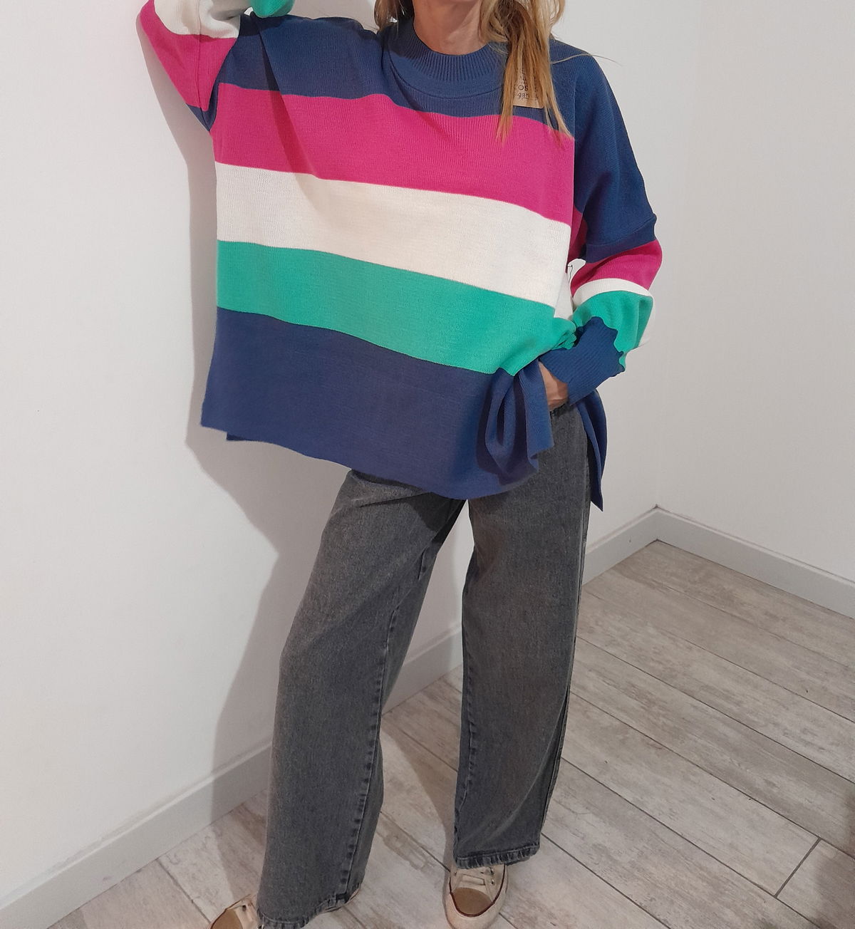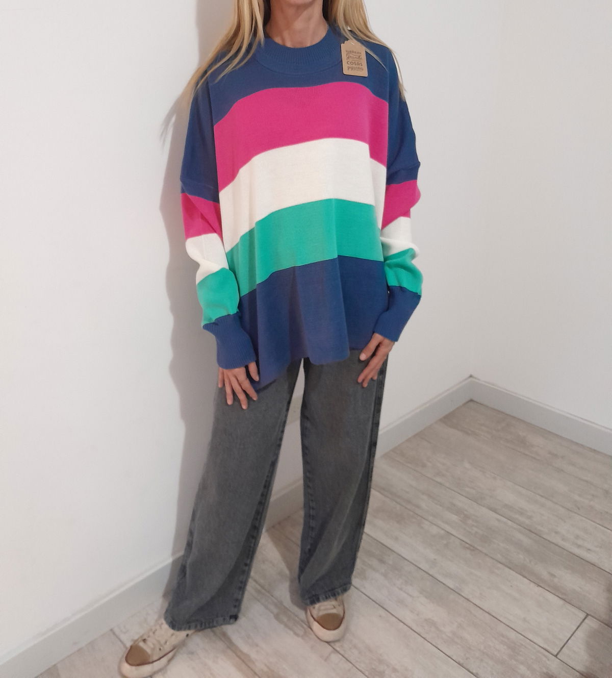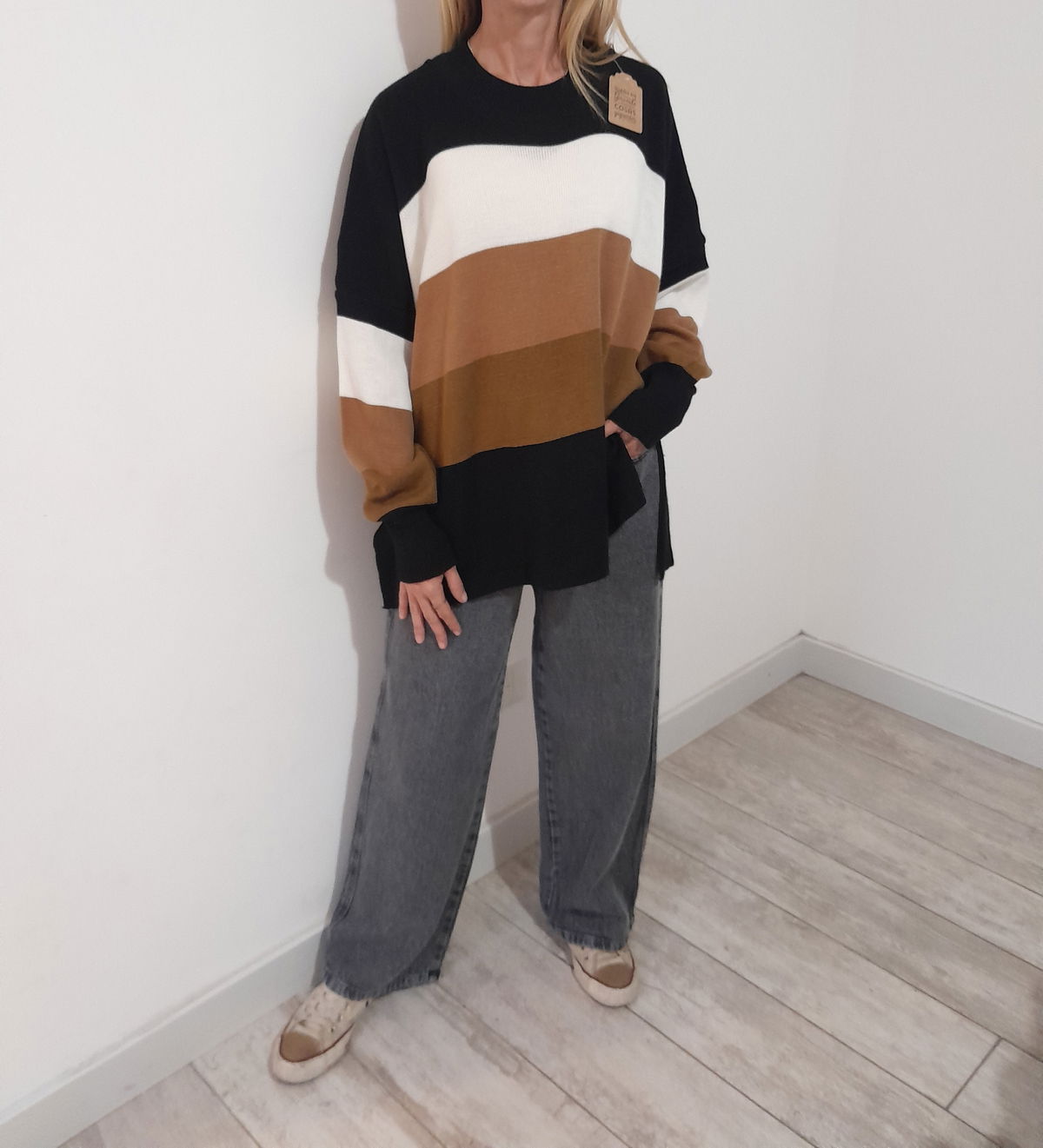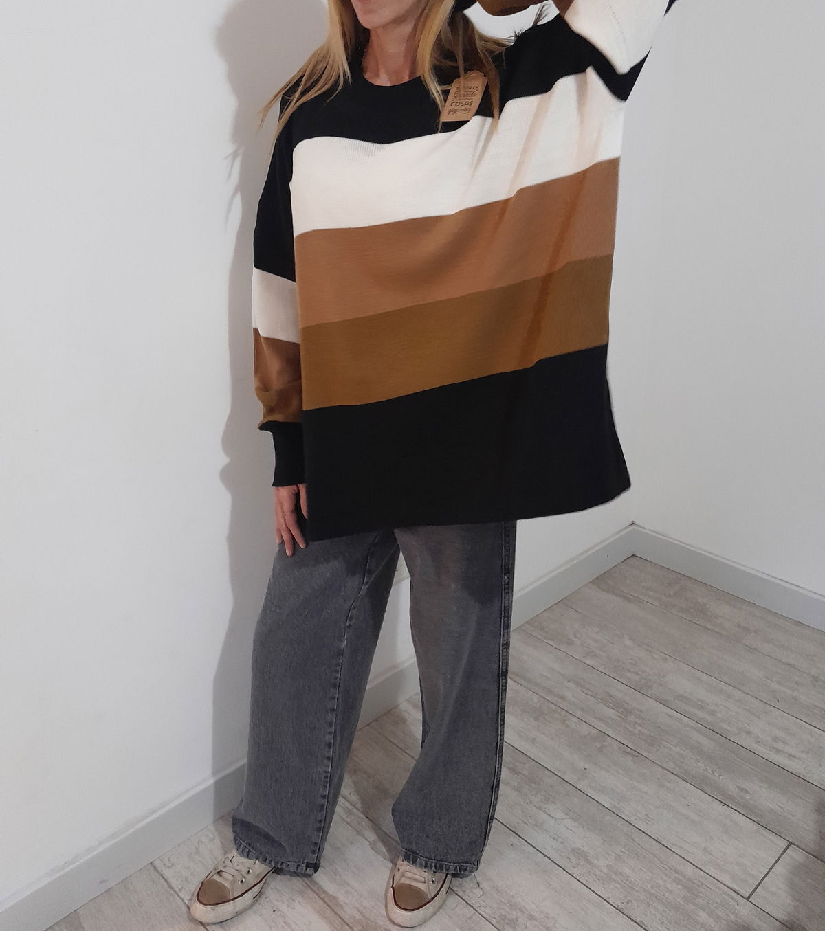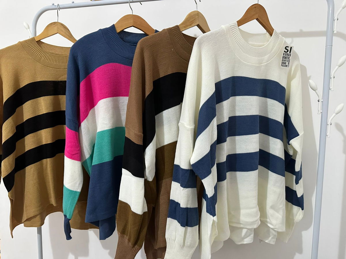 MAXI SWEATER DE LANA RAYADOS Y LISOS
