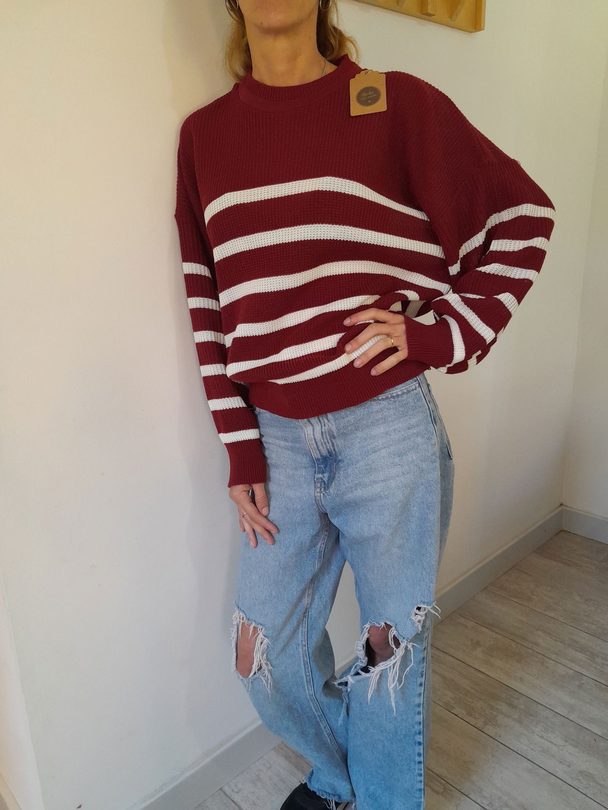 SWEATER DE LANA RAYADO MANGA GLOBO.