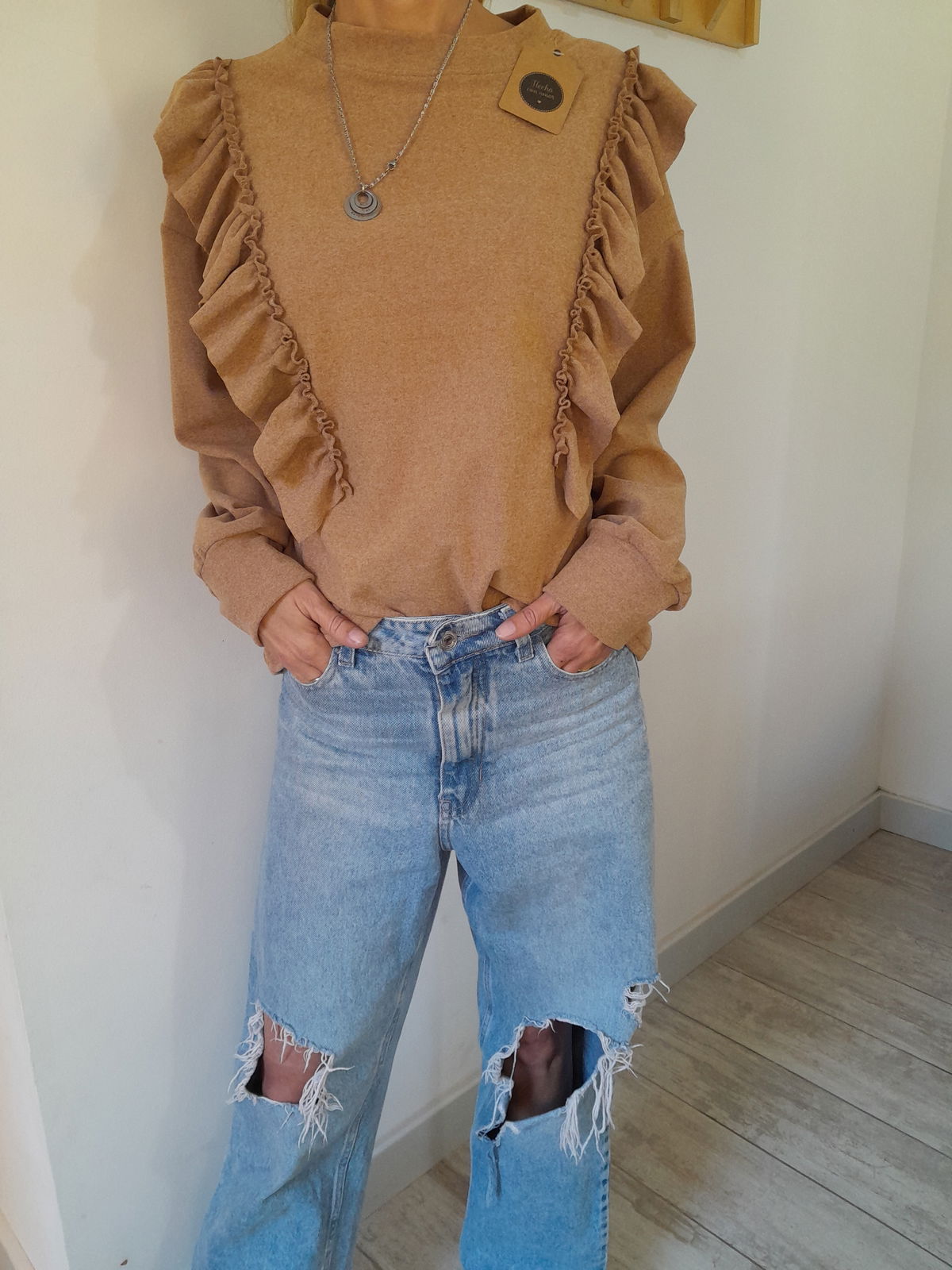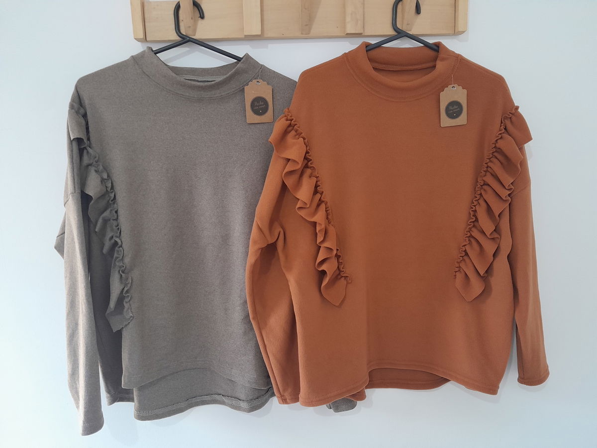 SWEATER EN TELA DARLON (PIEL DE DURAZNO) CON VOLADOS AL FRENTE. SUPER SUAVE, LIVIANO Y CALENTITO.