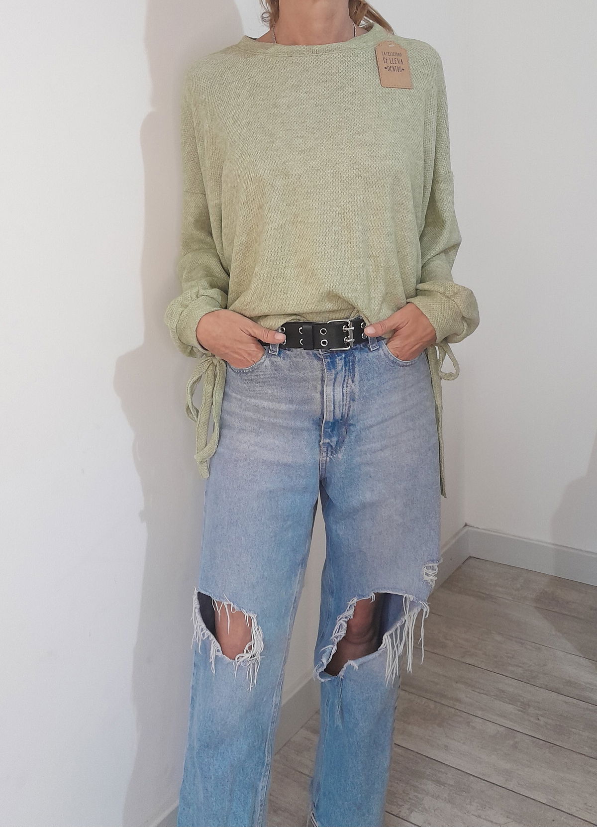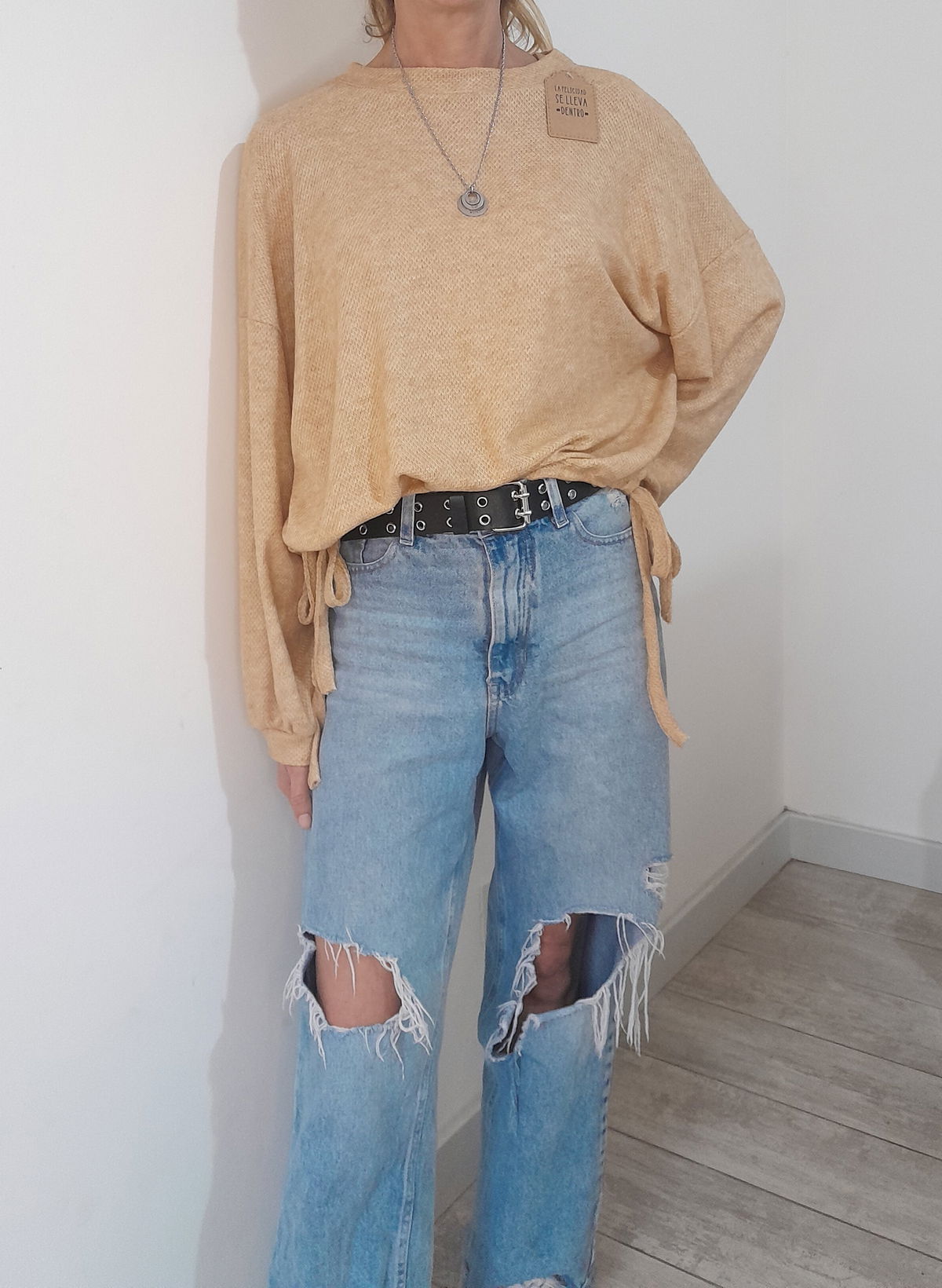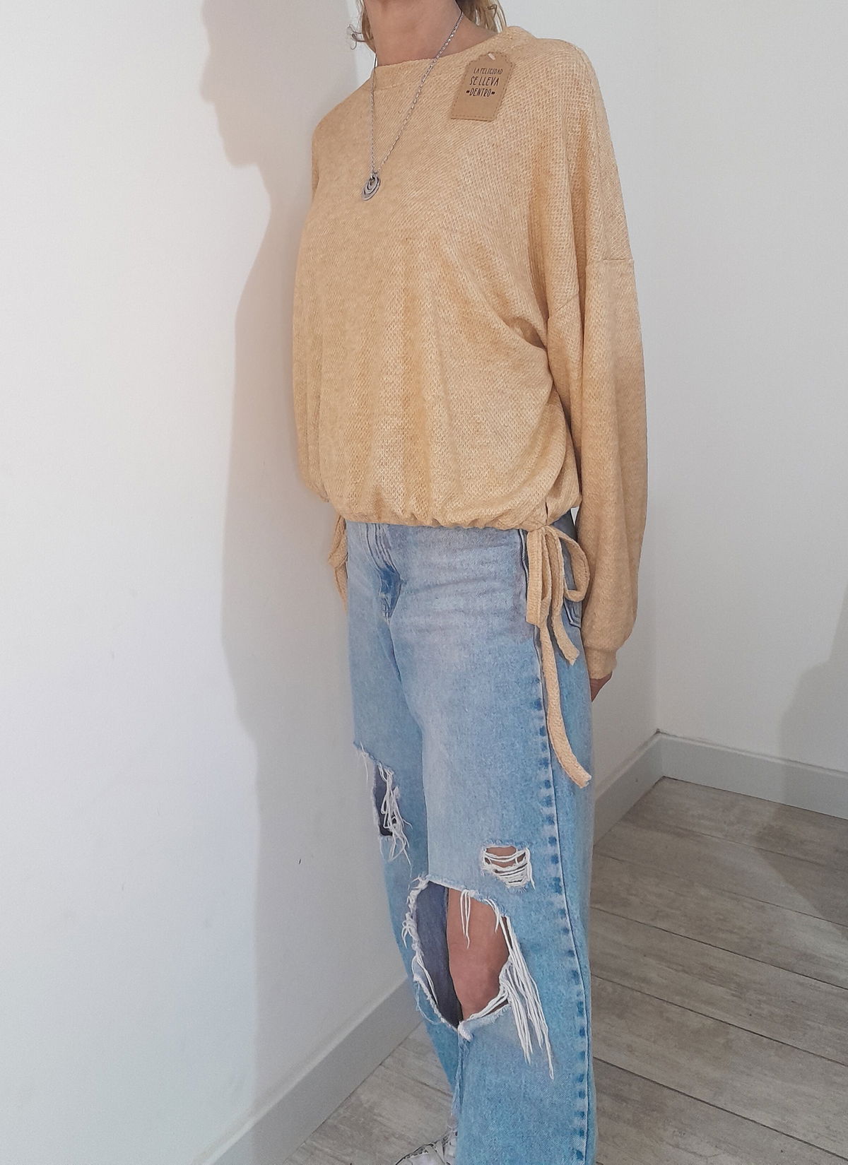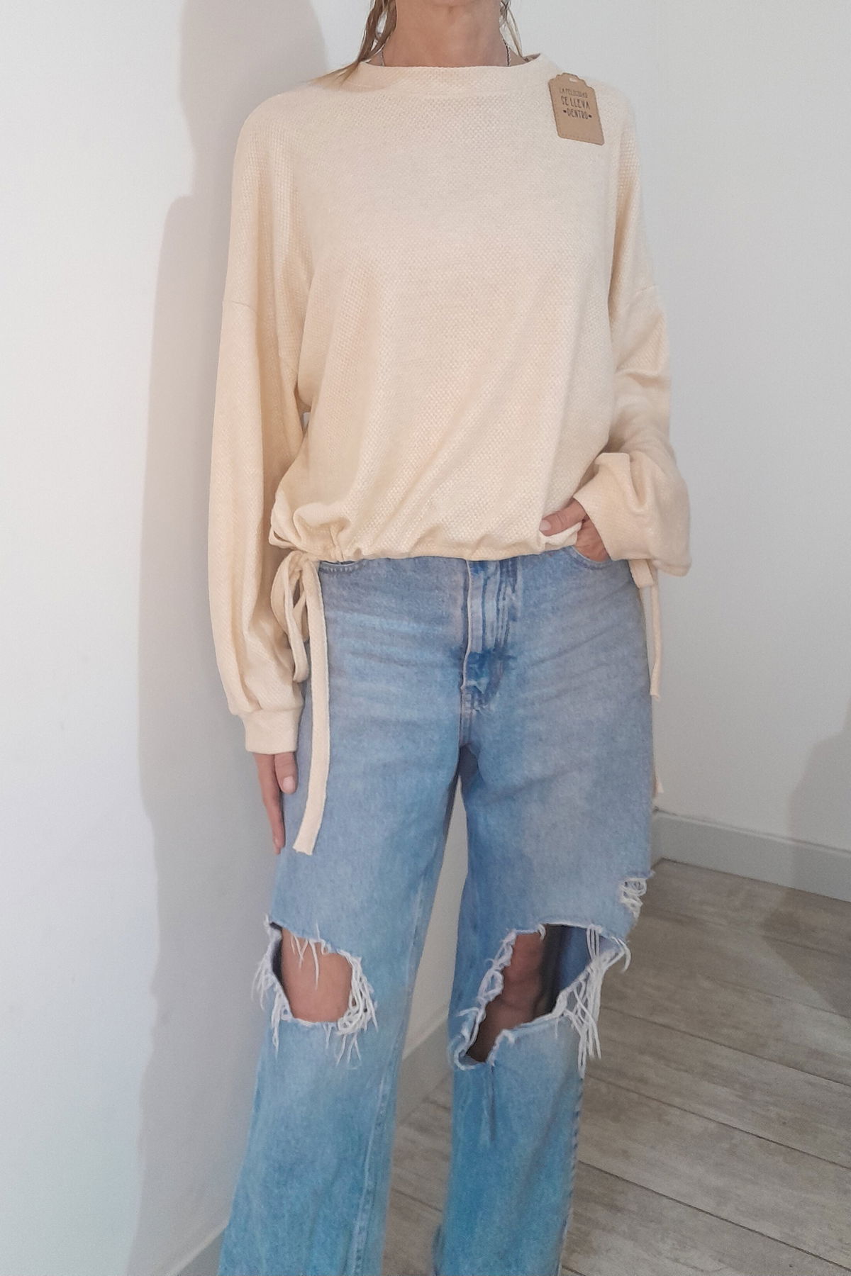 SWEATER LIVIANO EN TELA WAFFLE. SE PUEDE AJUSTAR DE LOS COSTADOS PARA AJUSTAR LA CAÍDA QUE QUIERAS, EN GLOBO O RECTA.