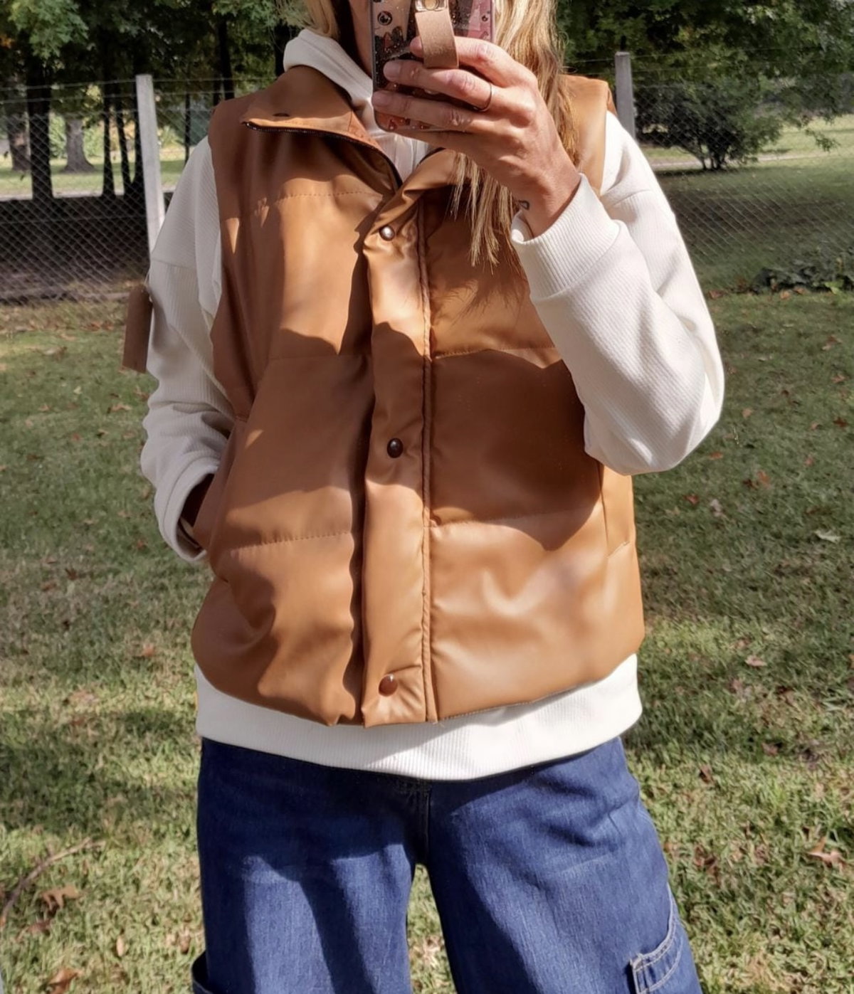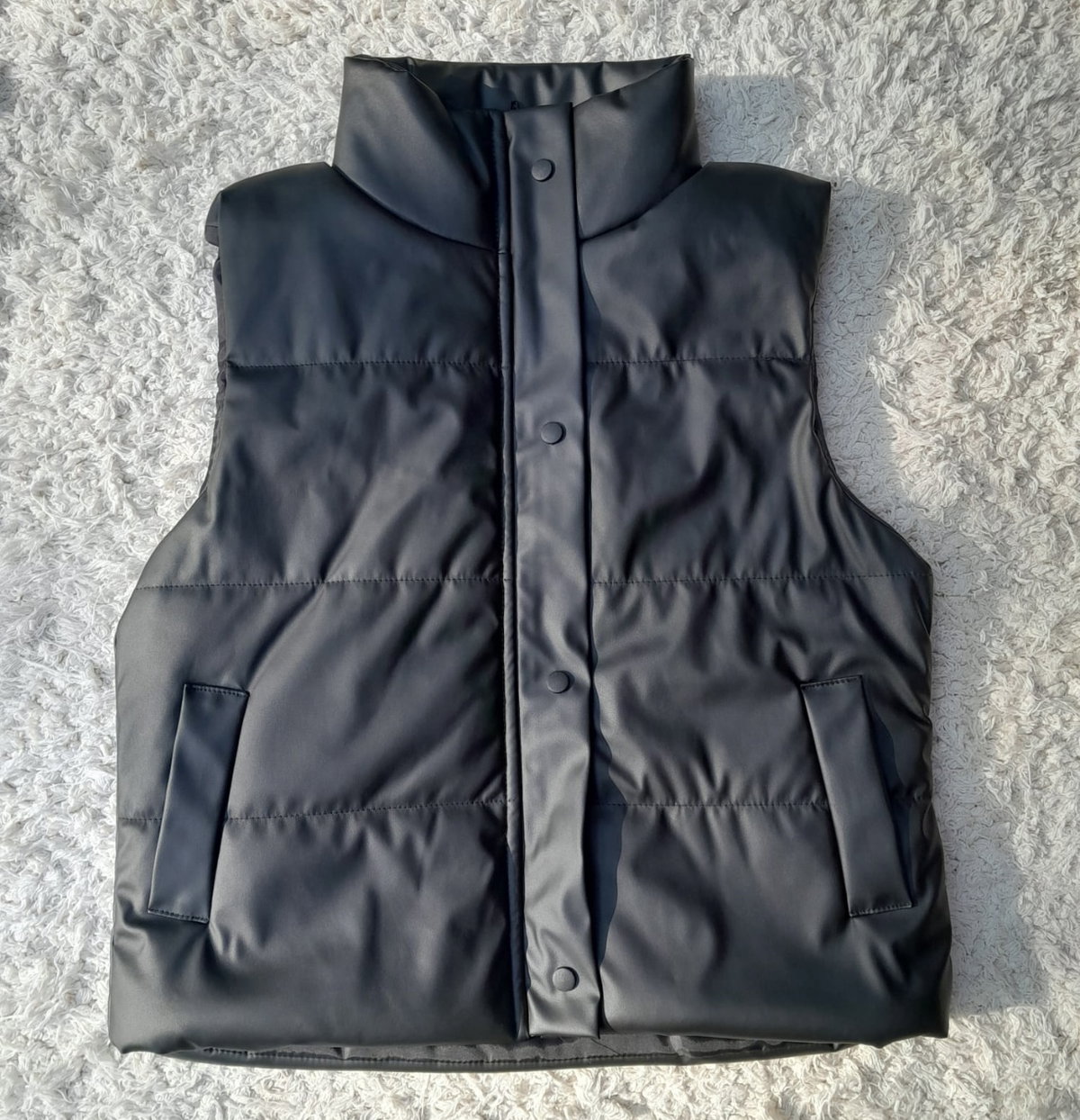 CHALECO DE ECOCUERO CON CIERRE Y BOTÓN SIN PIEL