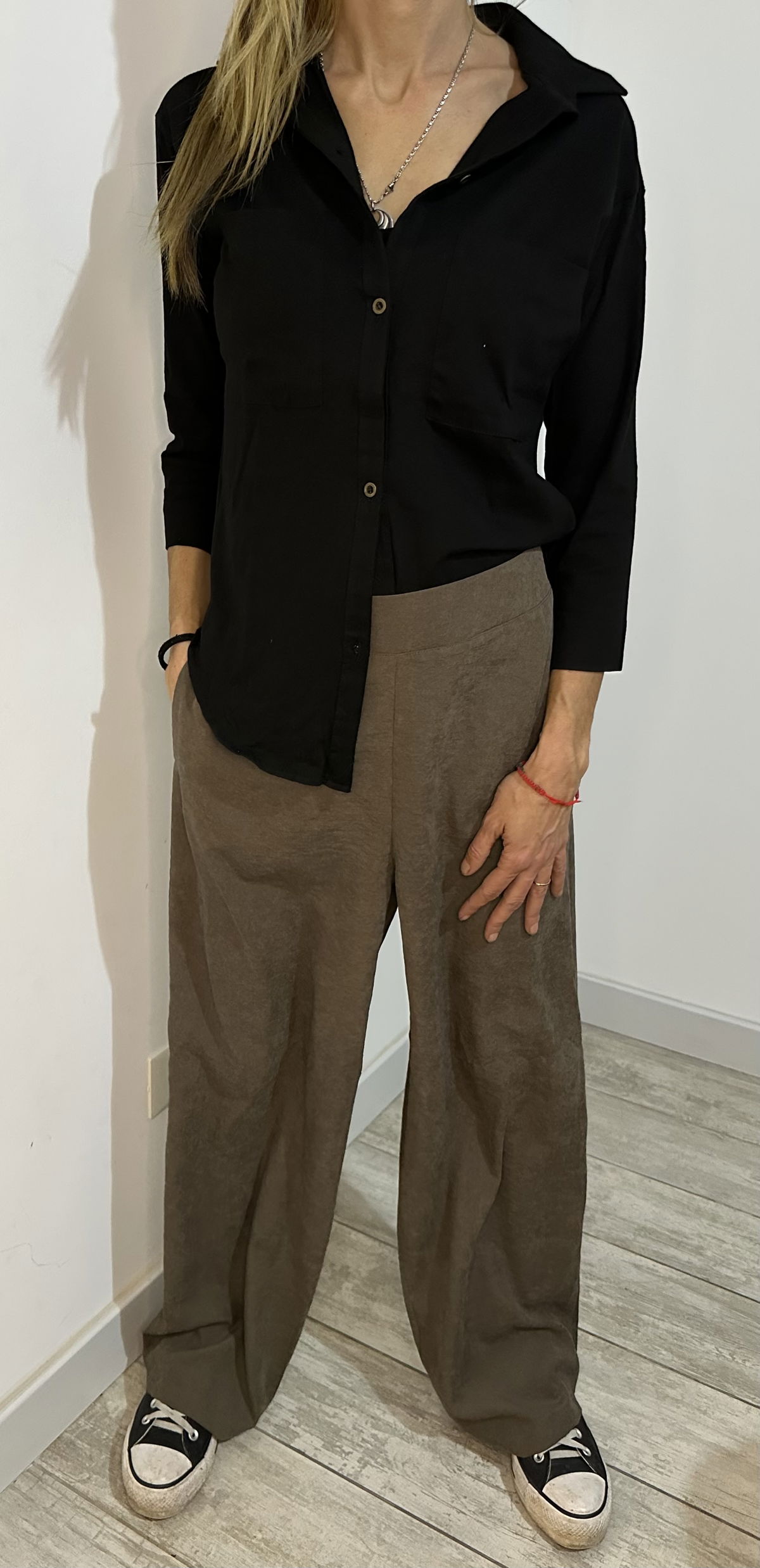 Pantalón sastrero gamuzado súper cómodo, con elástico en la cintura y bolsillos laterales.