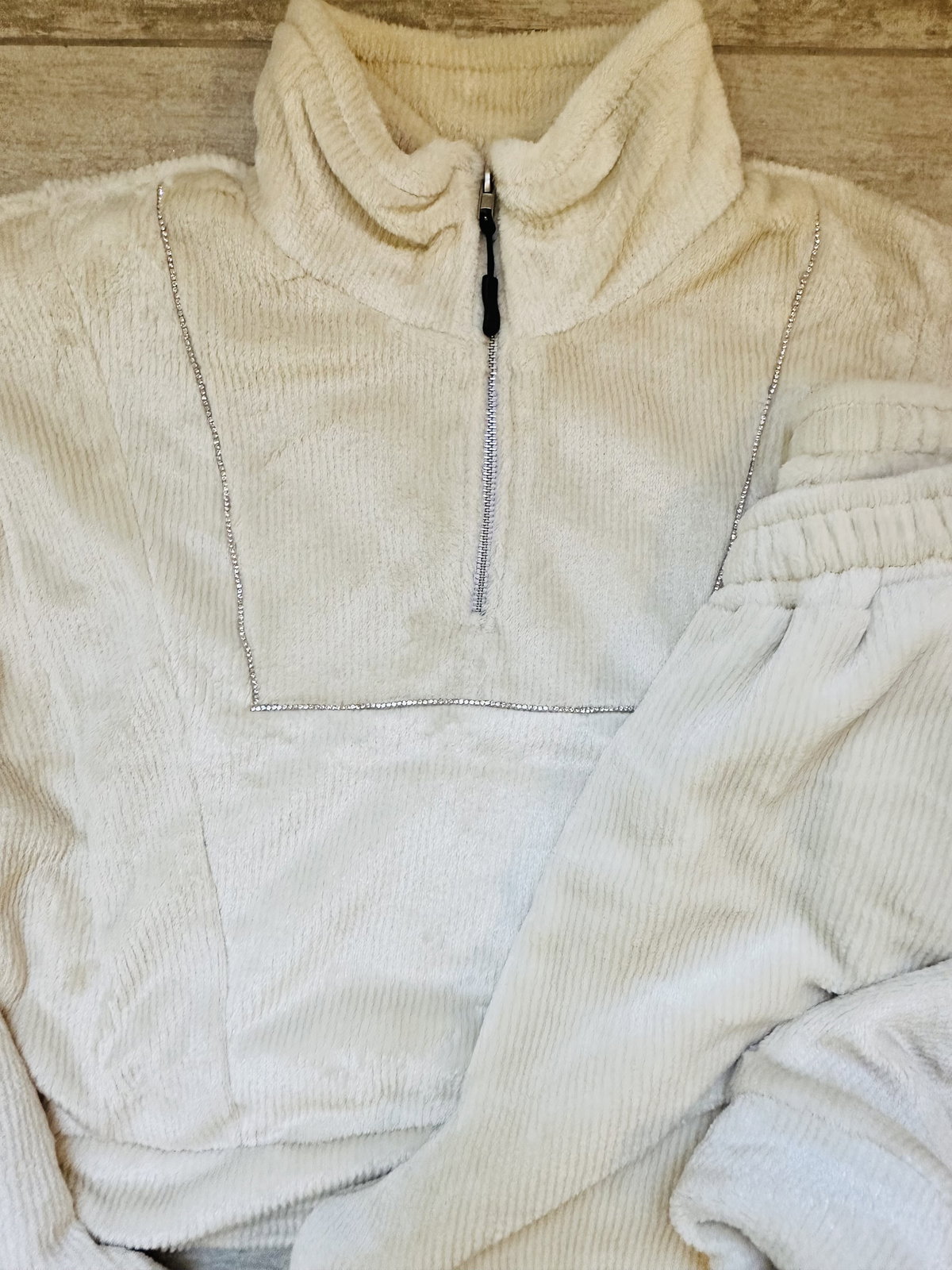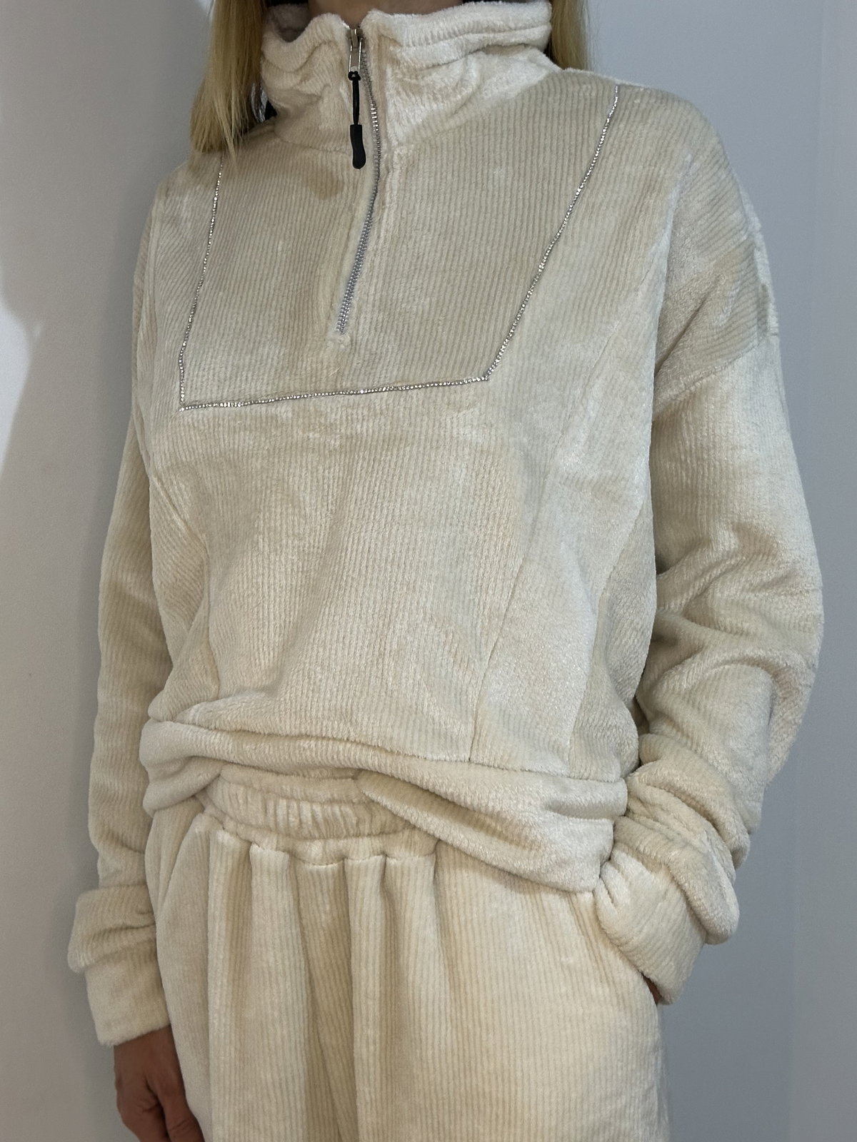 Conjunto corderoy con peluche – Tono vainilla con brillo