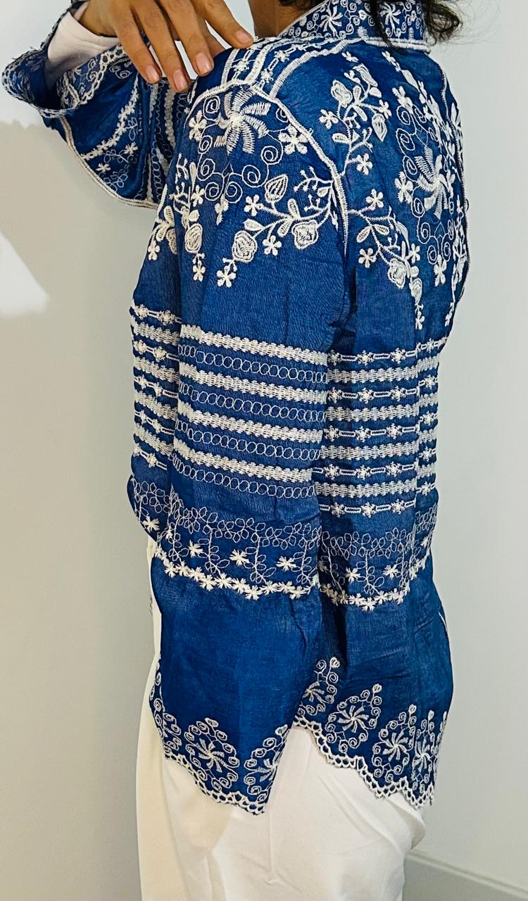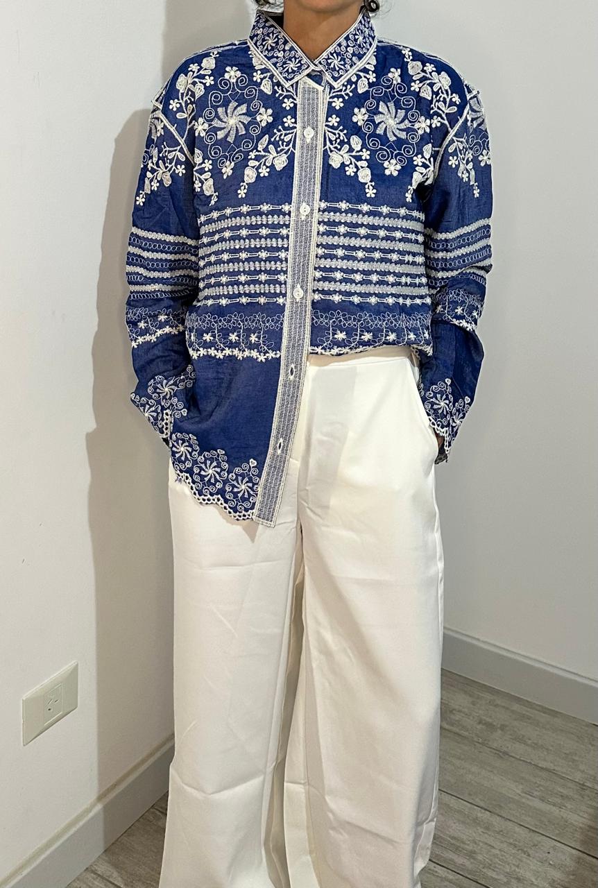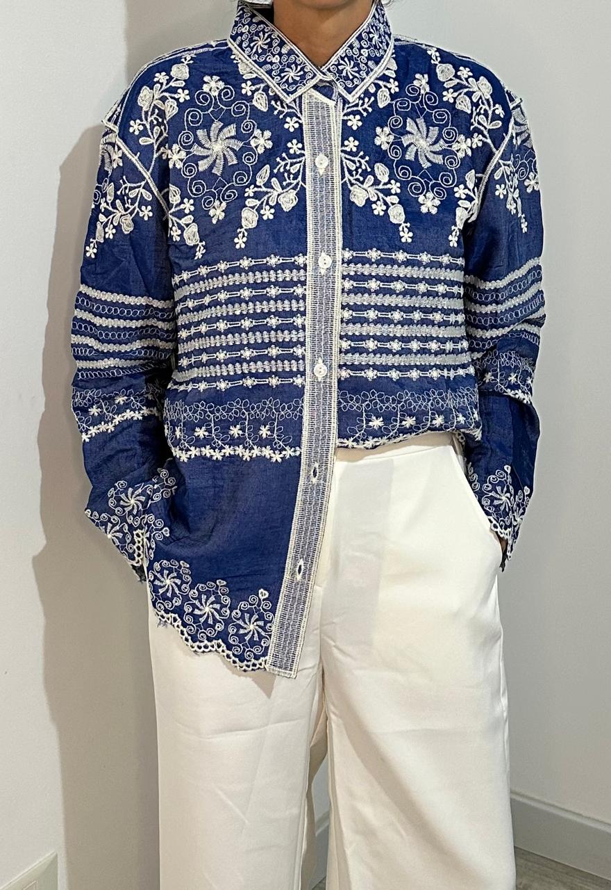 ✨ Camisa Bordada Azul Profundo – elegancia con alma propia