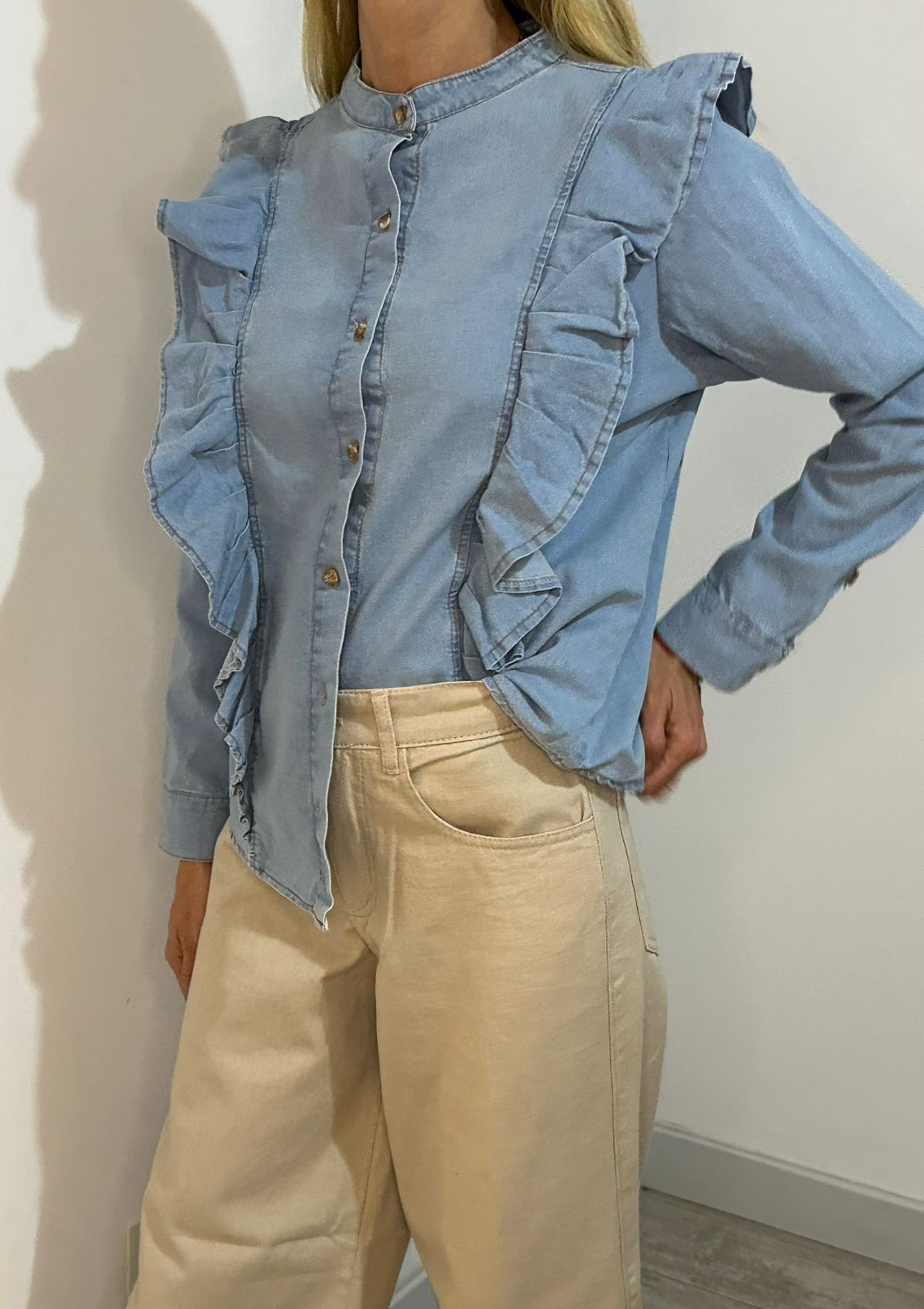 🌸 Camisa Volados Denim – lo simple, reinventado