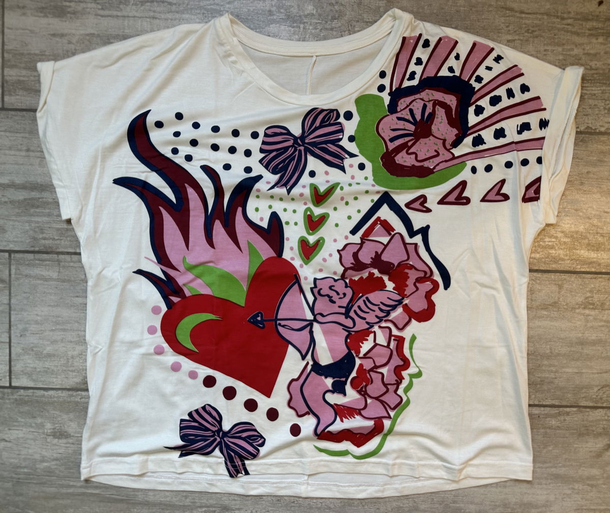 đ Cupido, fuego y flores: una explosiĂłn de amor en versiĂłn remera.