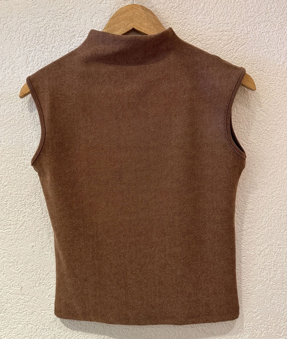 Minimalista, elegante y súper versátil. Este chaleco sin mangas está confeccionado en una tela suave al tacto que se adapta con delicadeza al cuerpo. Su cuello alto le aporta un toque sofisticado, ideal para llevarlo solo o como base de looks en capas. Disponible en tonos tierra y bordo, perfectos para esta temporada.
