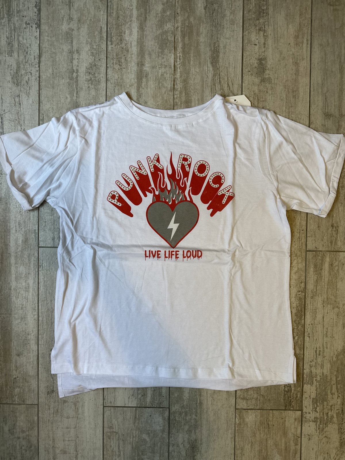 Para las que buscan diferenciarse, esta remera de algodón suave es puro estilo. Con corte relajado y una estampa en blanco y negro súper canchera, es la aliada perfecta para looks casuales con un toque de actitud.