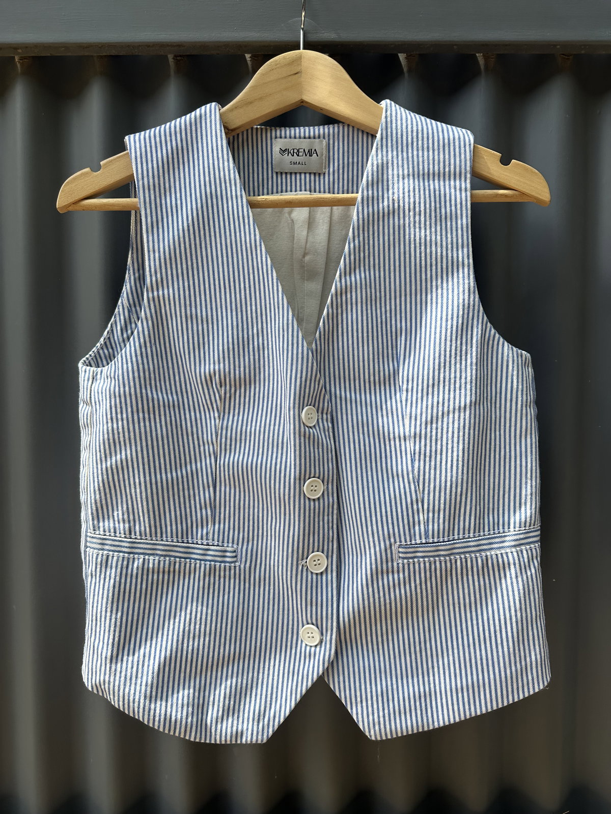 Chaleco sastrero confeccionado en gabardina rayada