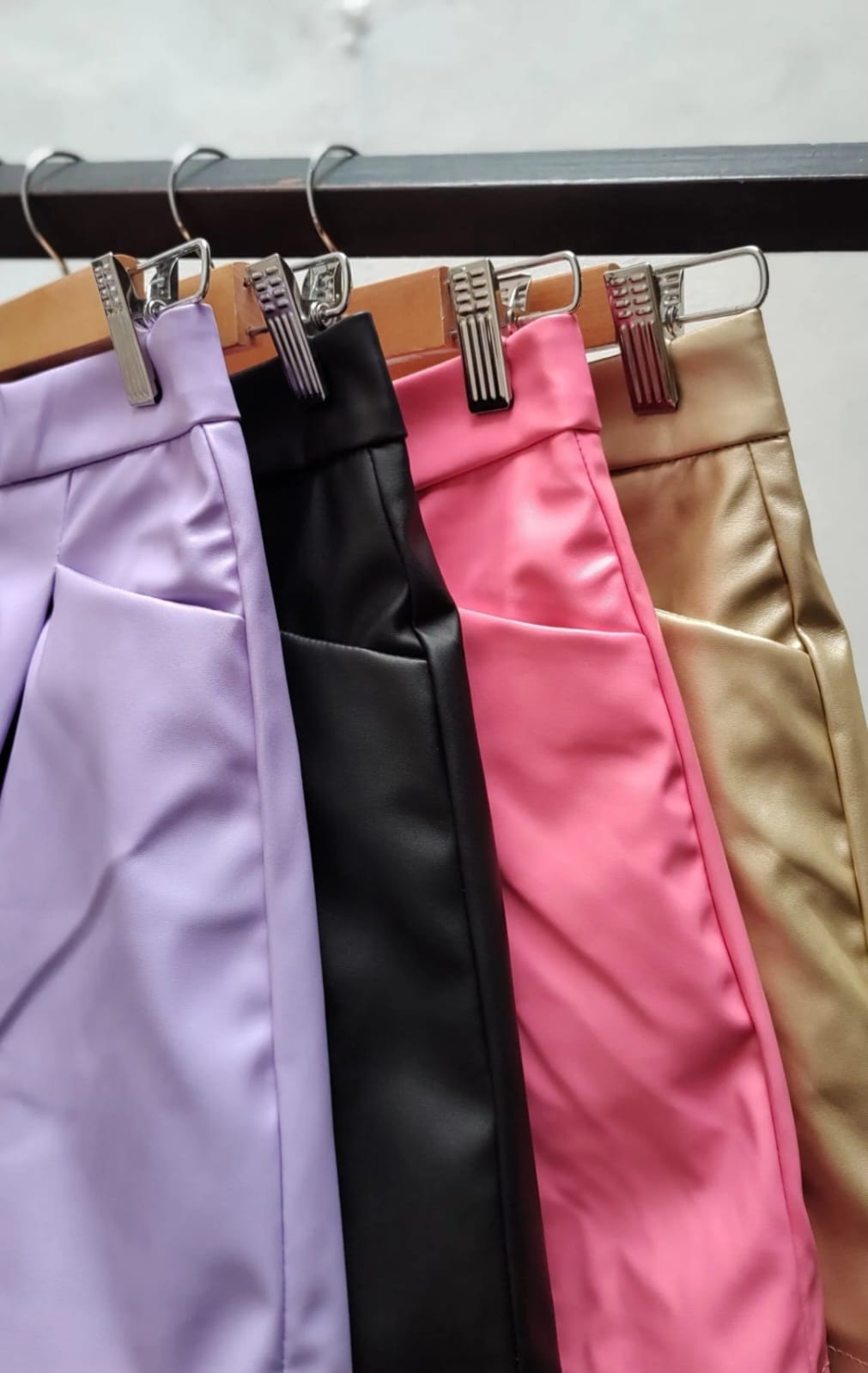 Short engomado con pliegues delanteros que le dan movimiento y un fit súper canchero. La textura engomada suma ese efecto glam que eleva cualquier look. Perfecto para combinar con botas o sandalias ✨