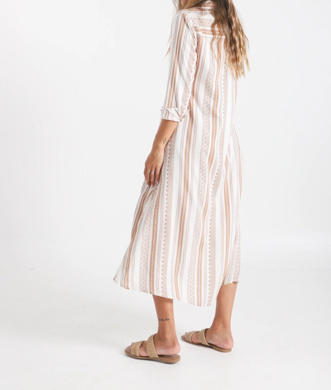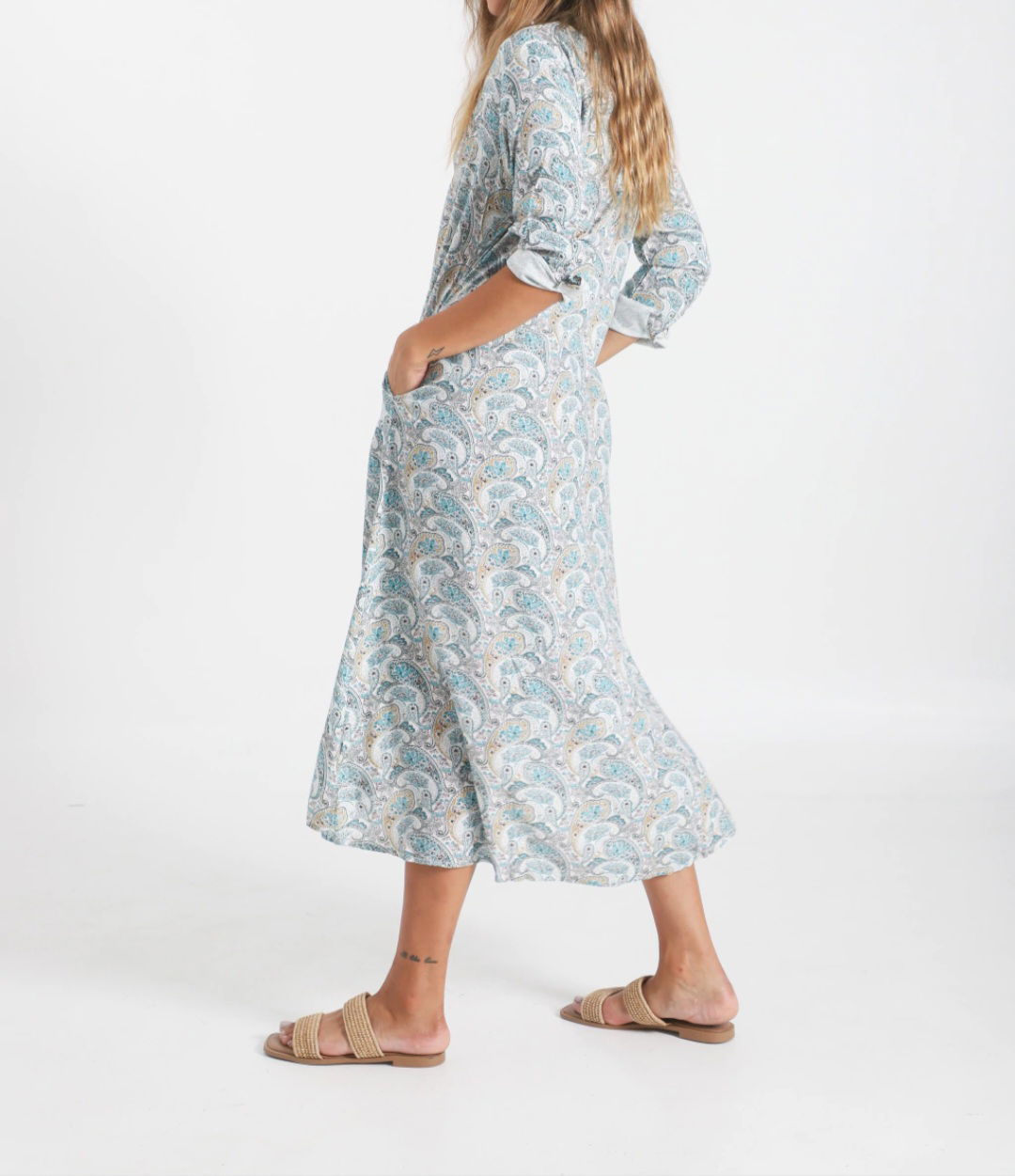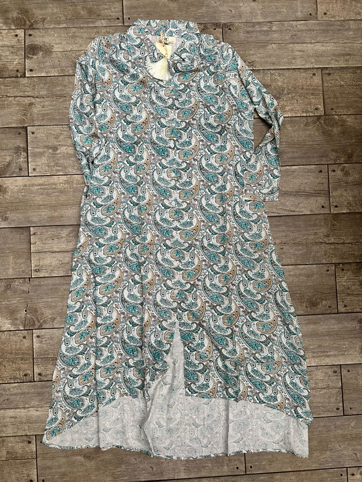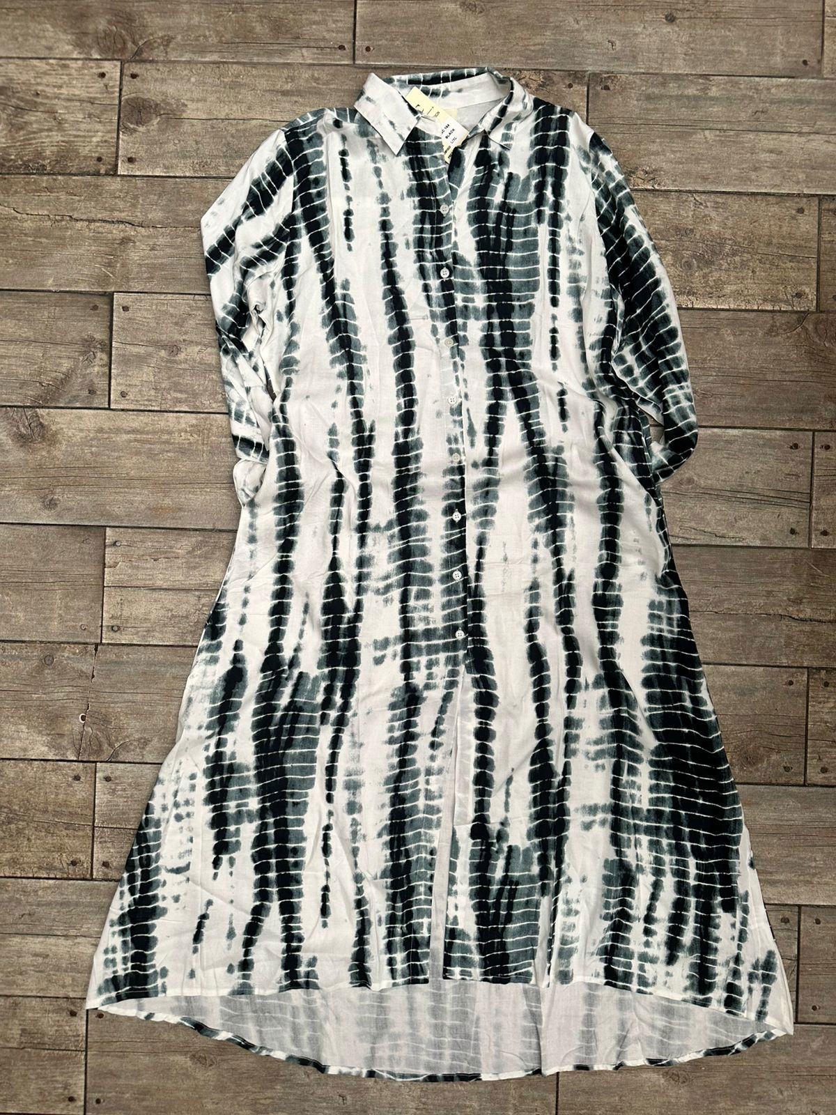 Camisero largo con estampa de India, en fibrana estampada super suave, con movimiento, corte relajado y tajos laterales que le suman actitud. Úsalo suelto o marcá la cintura con un cinturón.