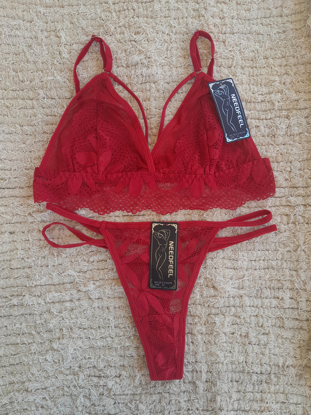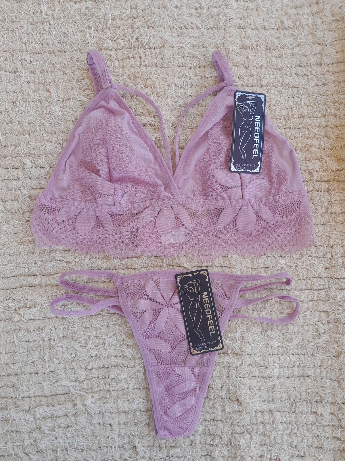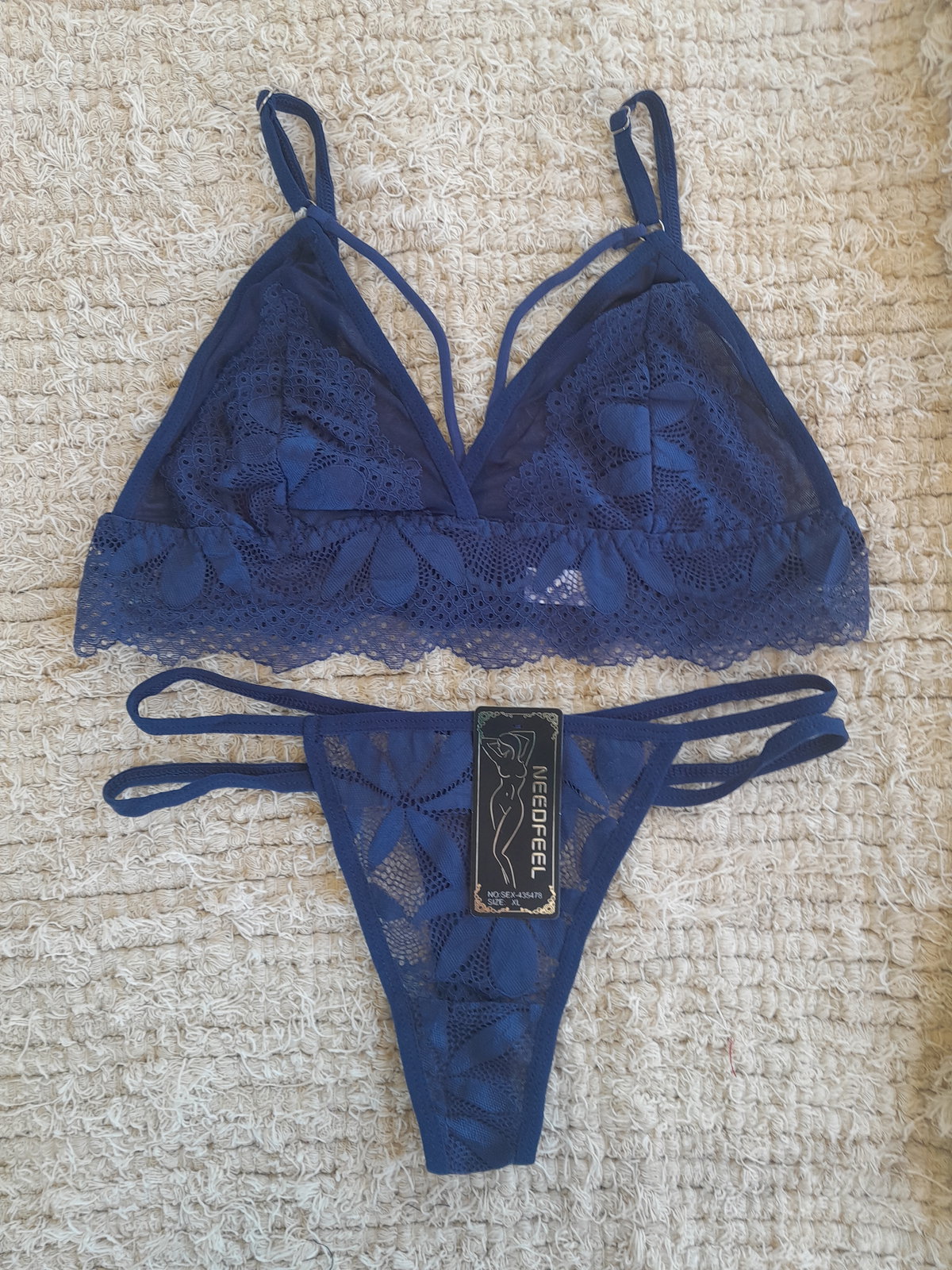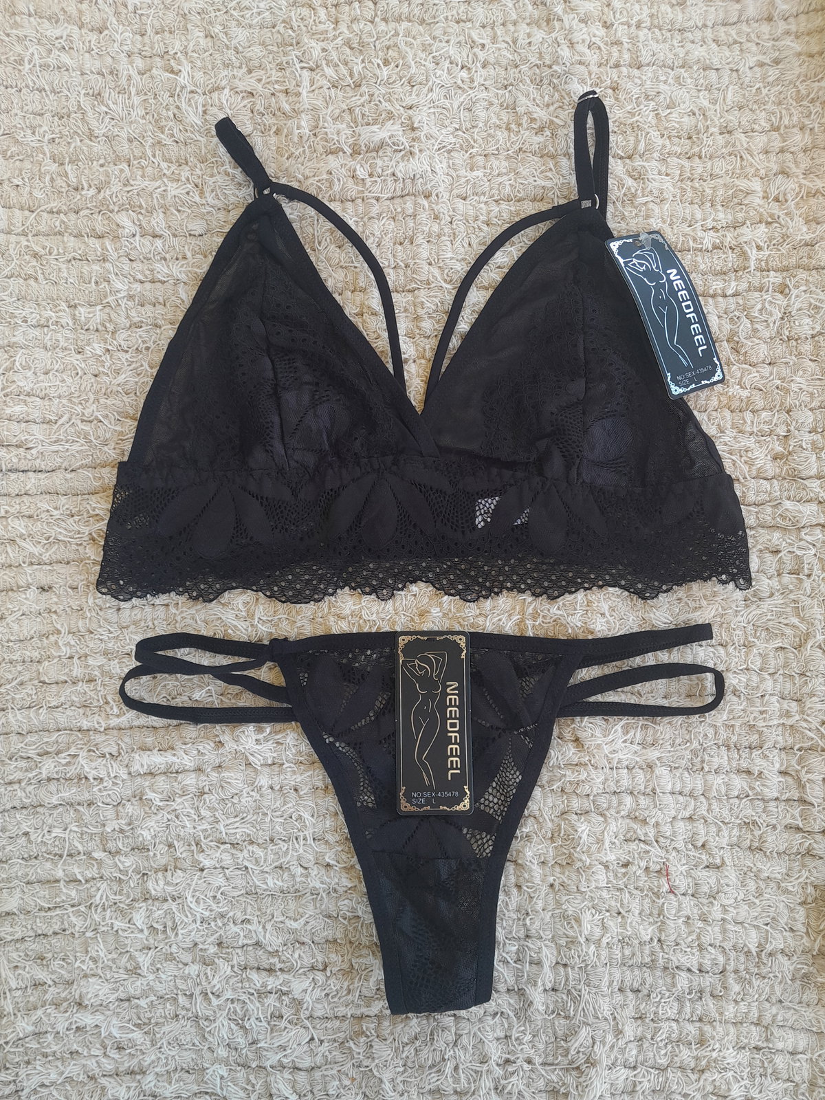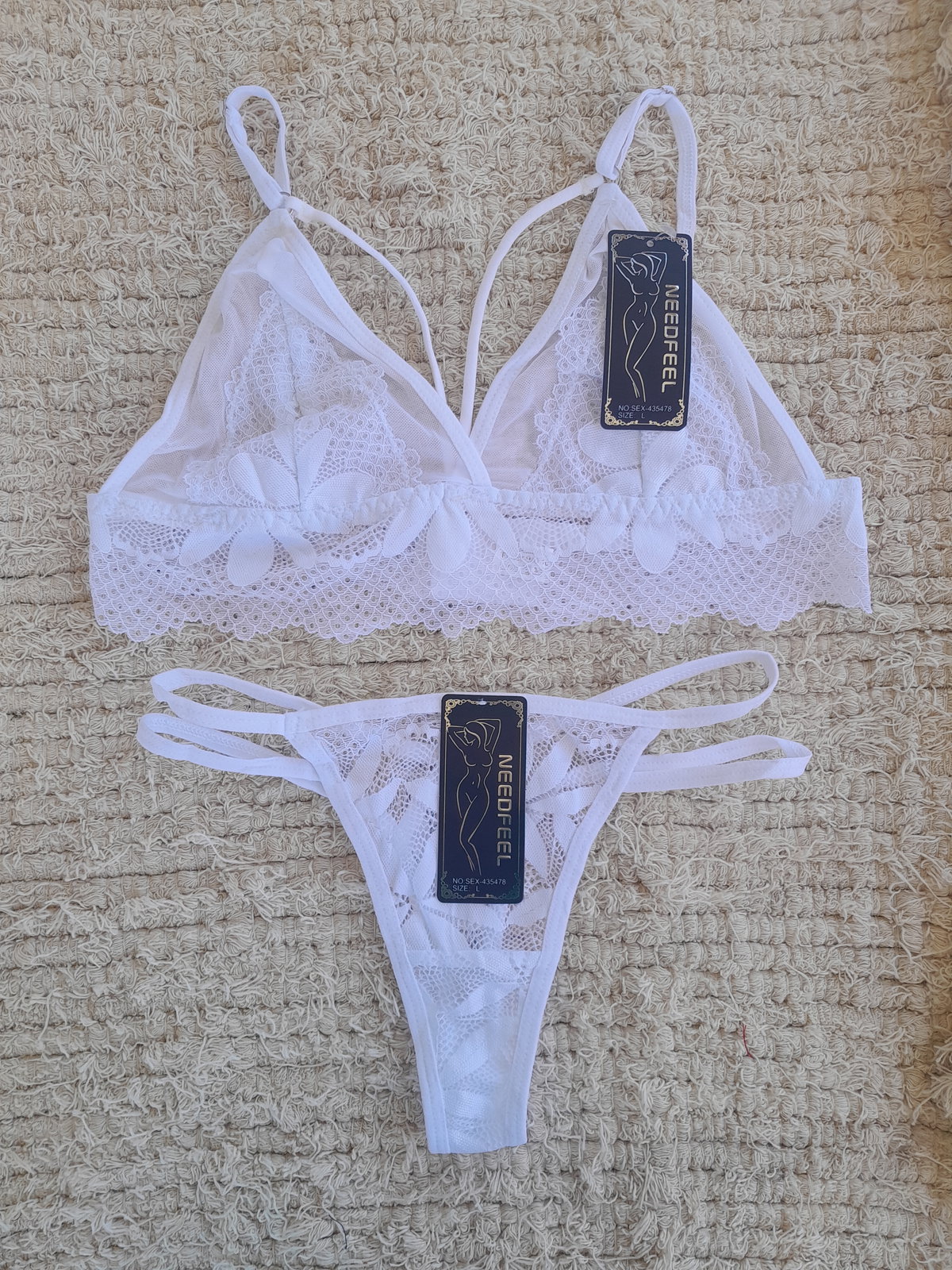 Conjunto de tul ultra suave con encaje superpuesto. Corpiño triangular con tiras que enmarcan el busto y contorno en encaje con lycra elástica para un calce cómodo y flexible. Less, de laterales finos en tiritas, suma ese toque sexy que estiliza la silueta. Disponible en varios colores y 3 talles: M: 85 de busto | L: 90 de busto | XL: 95/100 de busto