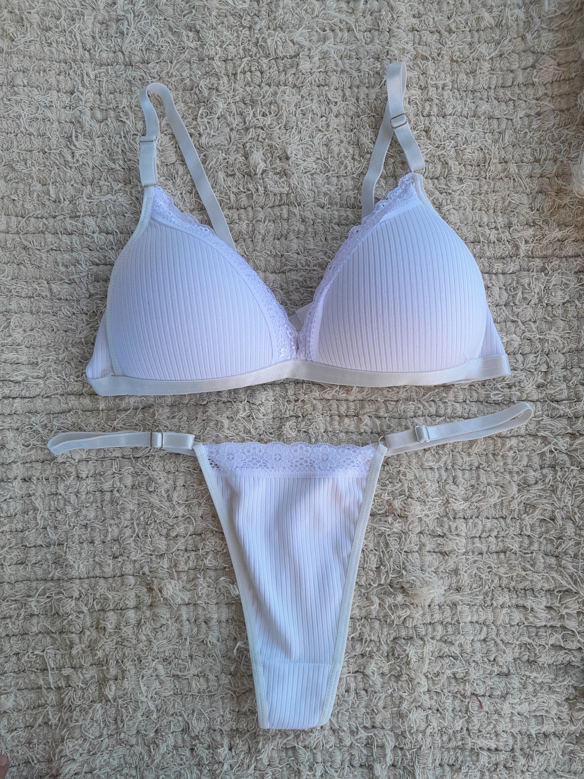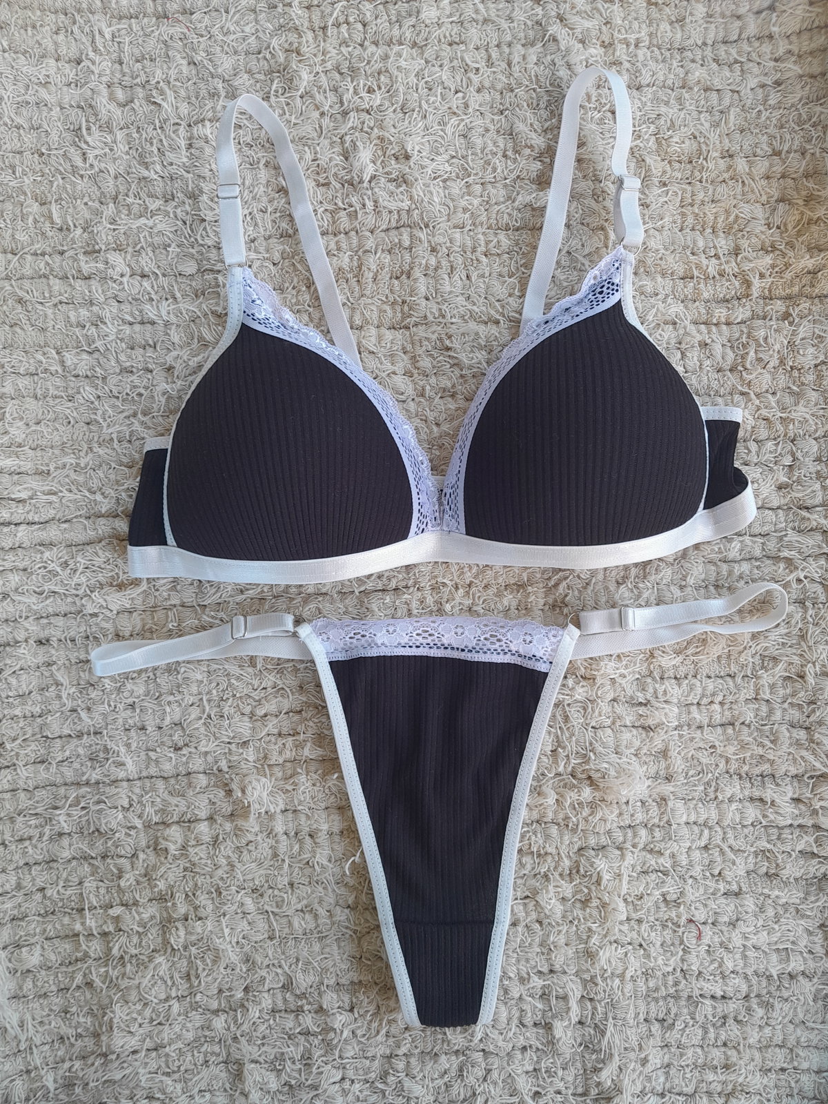 Conjunto de lycra y algodón morley con taza soft, súper cómodo y delicado. Detalles de encaje blanco que realzan el diseño y suman ese toque romántico. La less es regulable para un calce perfecto.