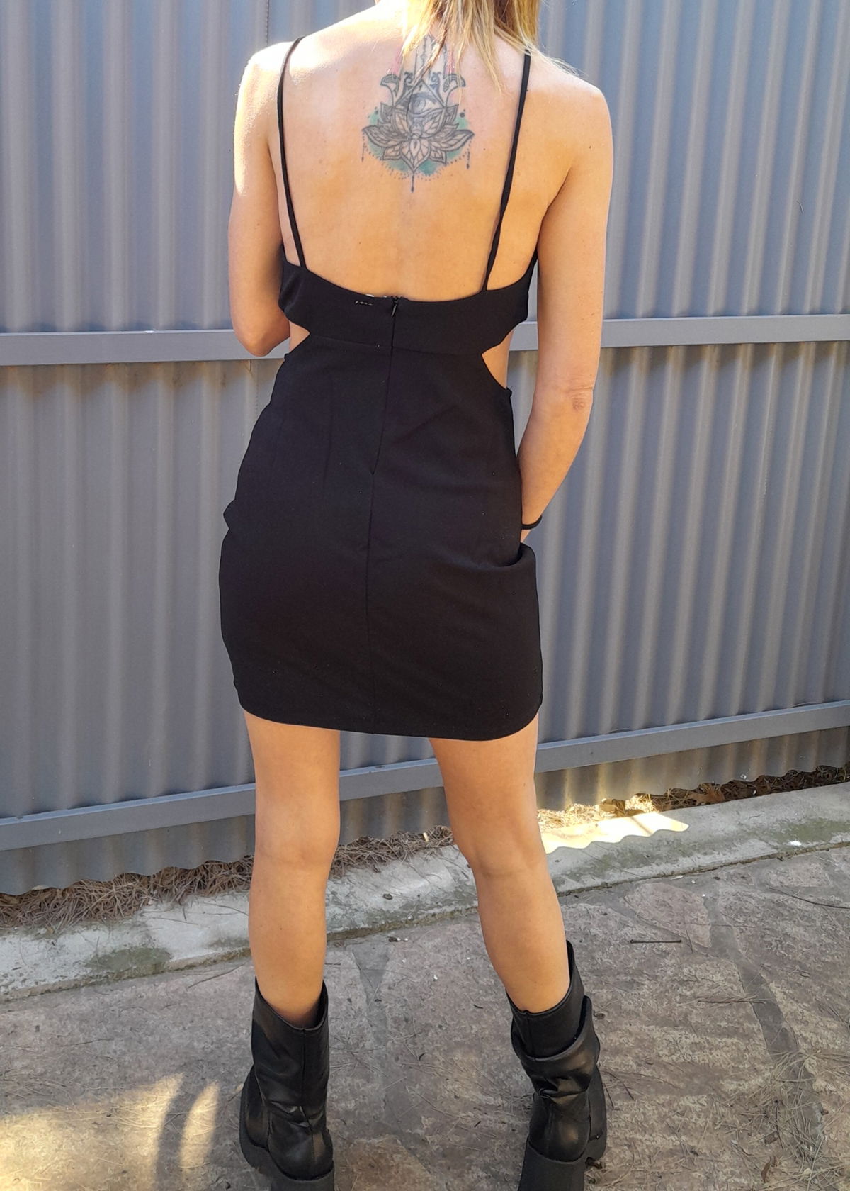Vestido de noche en tela premium • Gruesa • con escote corazón y recortes laterales• Elastizado, espalda baja y cierre para un calce perfecto 🖤