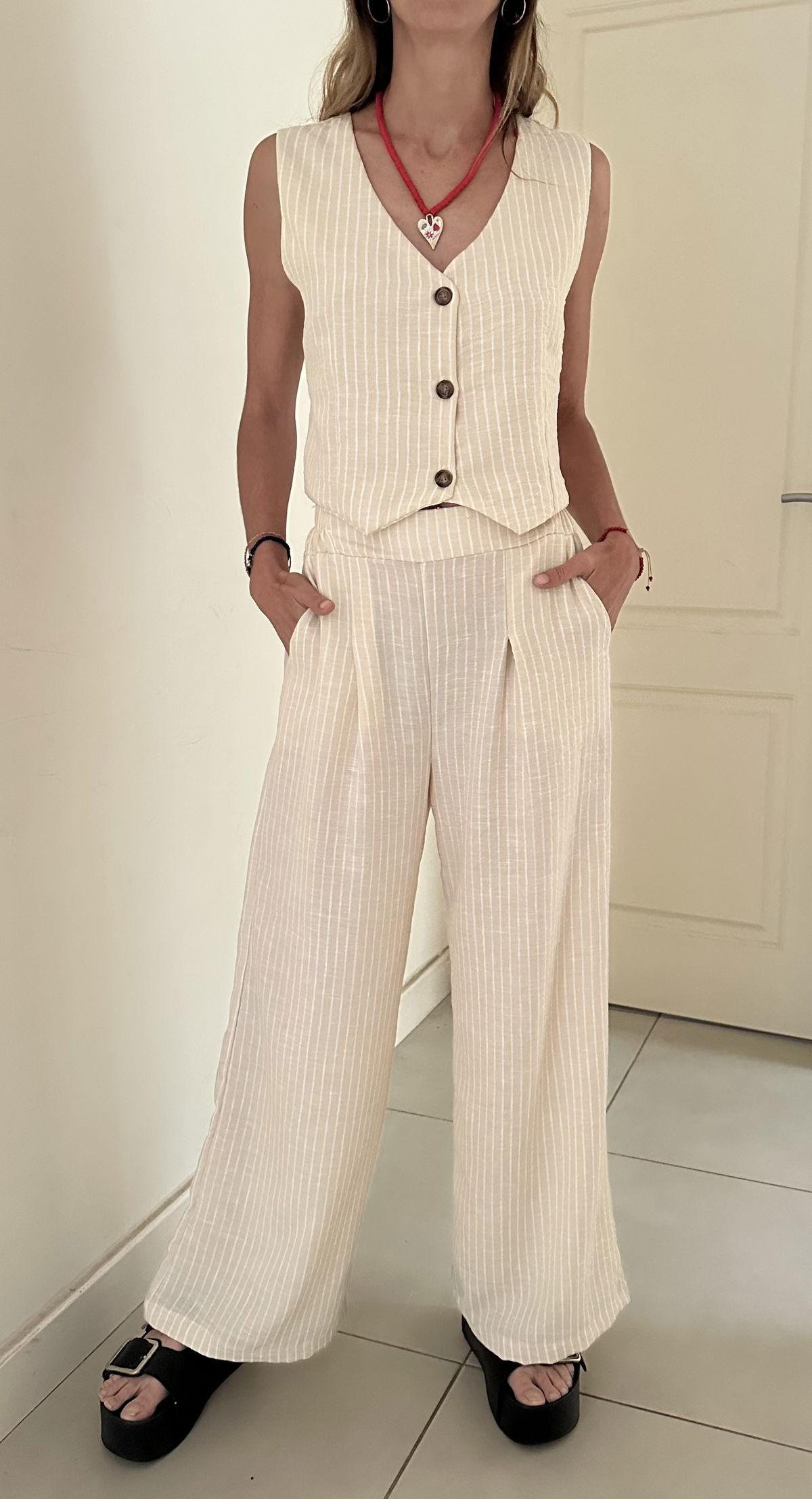 Mega cómodo, fresco y canchero. El chaleco y el palazo se llevan el premio a la dupla más versátil de la temporada 💥