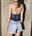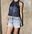 • Musculosa al cuello, se ajusta mediante botón, y espalda descubierta.