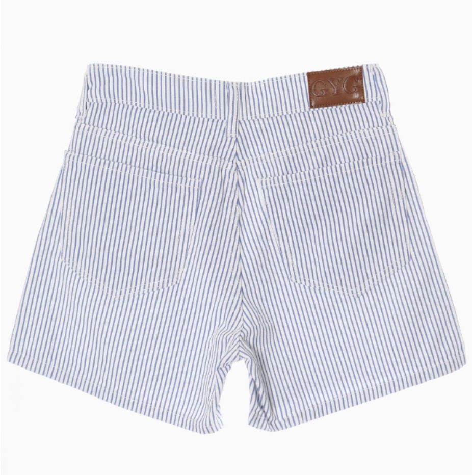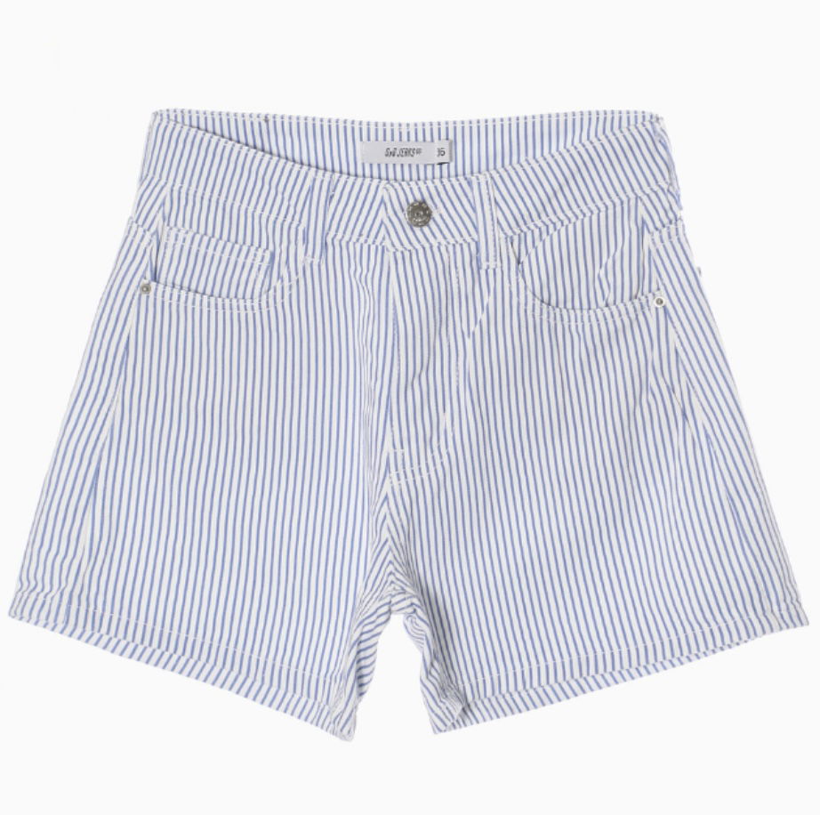Short Zaragoza – jean blanco con rayitas celestes🔥en super tendencia esta temporada! bolsillos y largo cómodo. Simple, canchero y listo para cualquier plan.