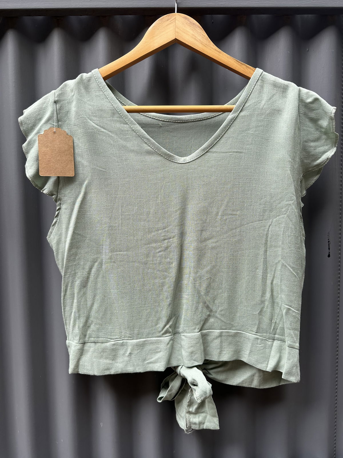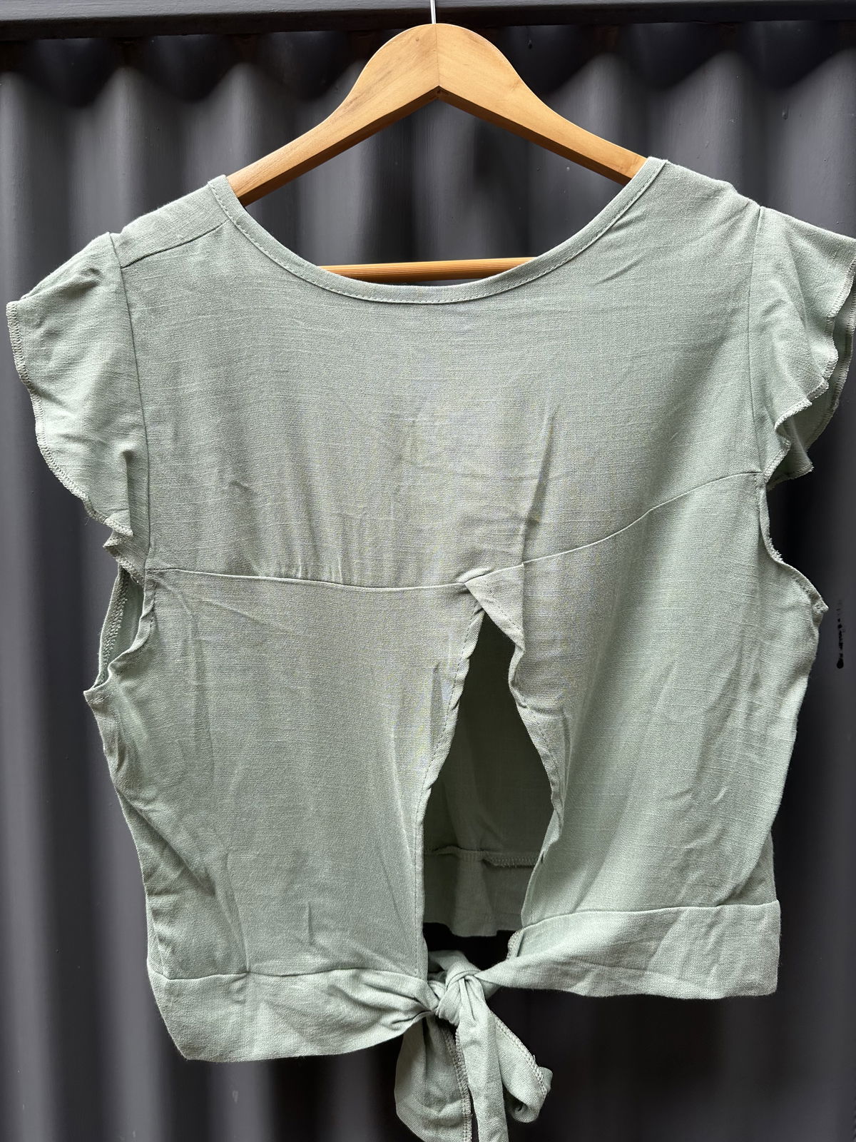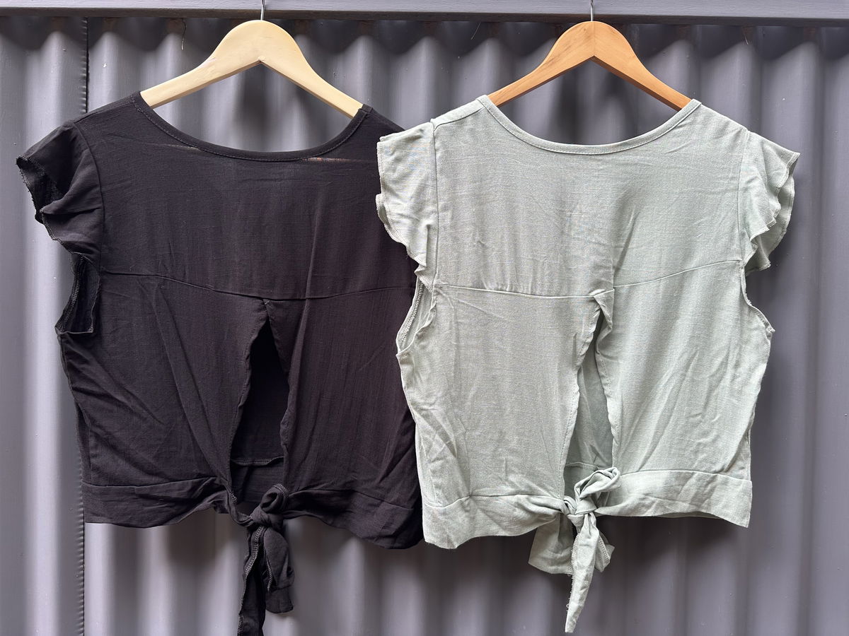 Remera de lino con abertura en la espalda y lazo para atar.