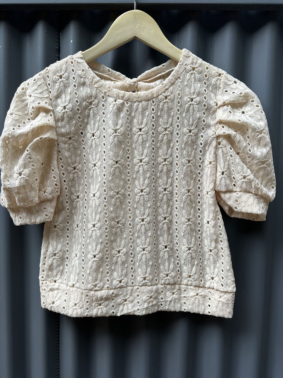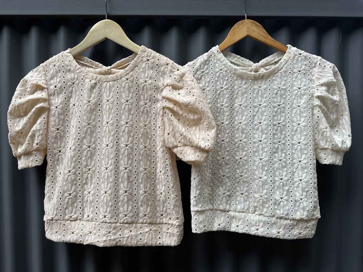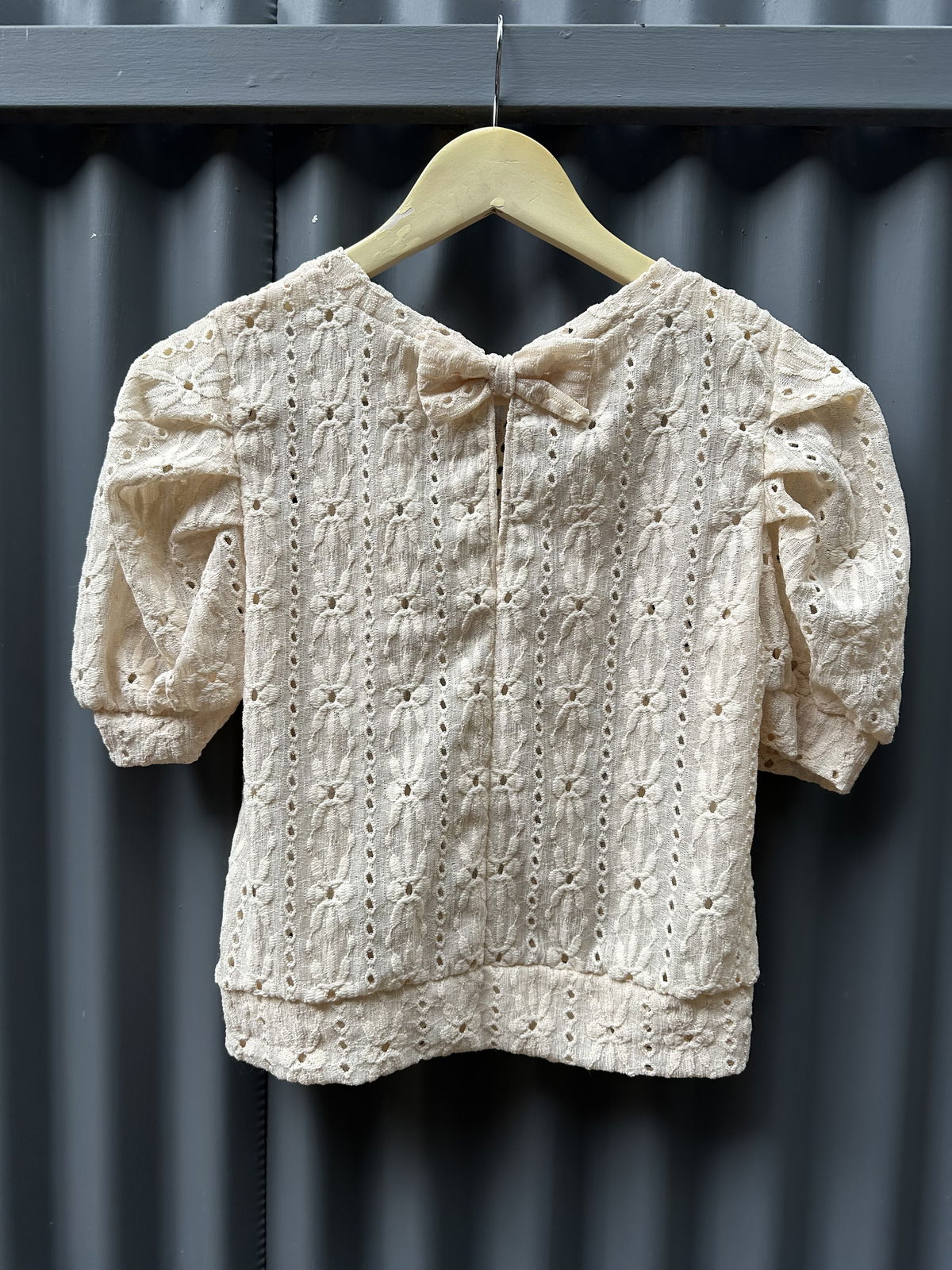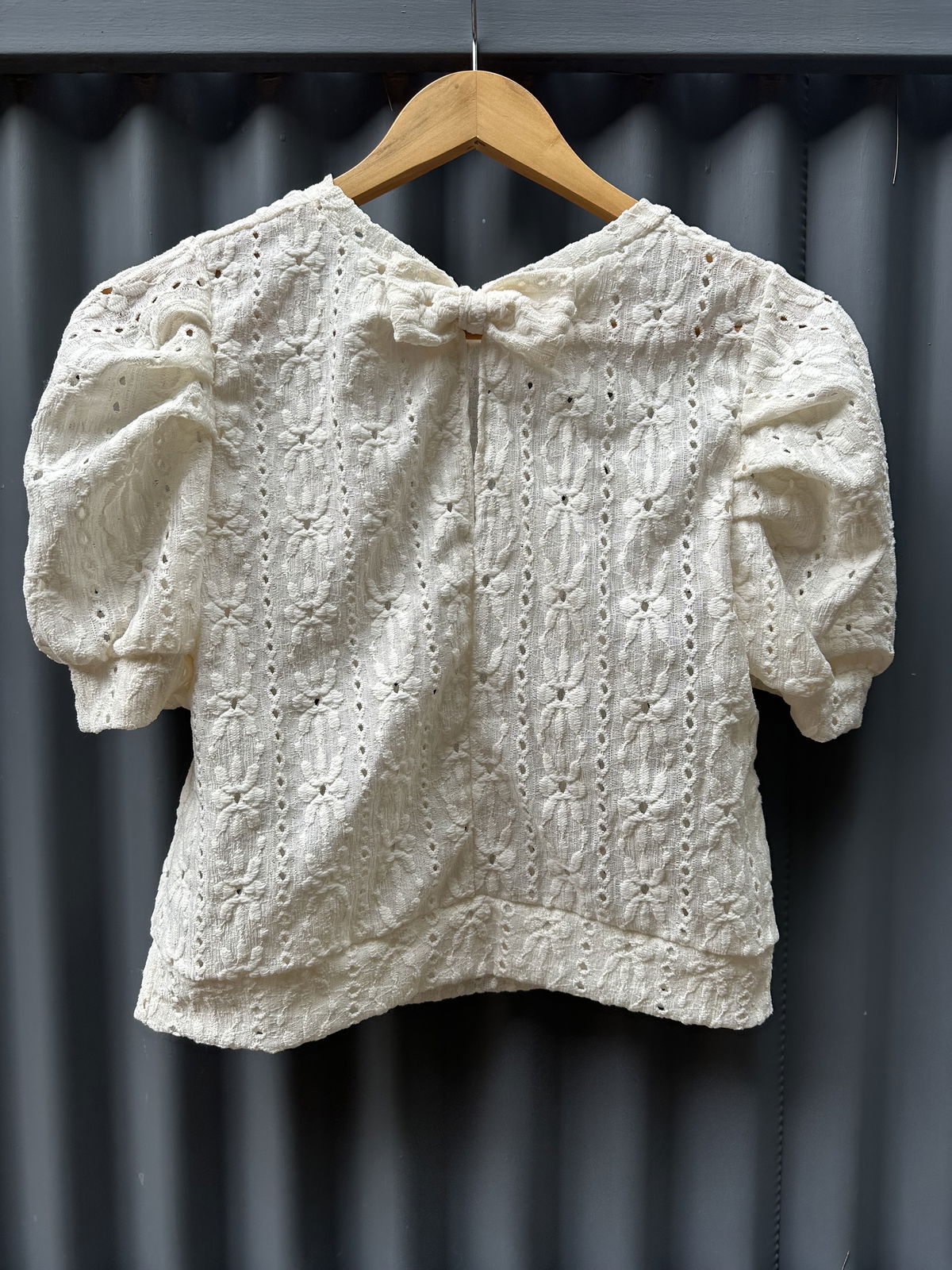 Delicada y soĂąada. Su textura labrada tipo broderie y el lazo en la espalda la hacen Ăşnica. RomĂĄntica pero fresca, ideal para looks relajados con ese toque especial đŤ