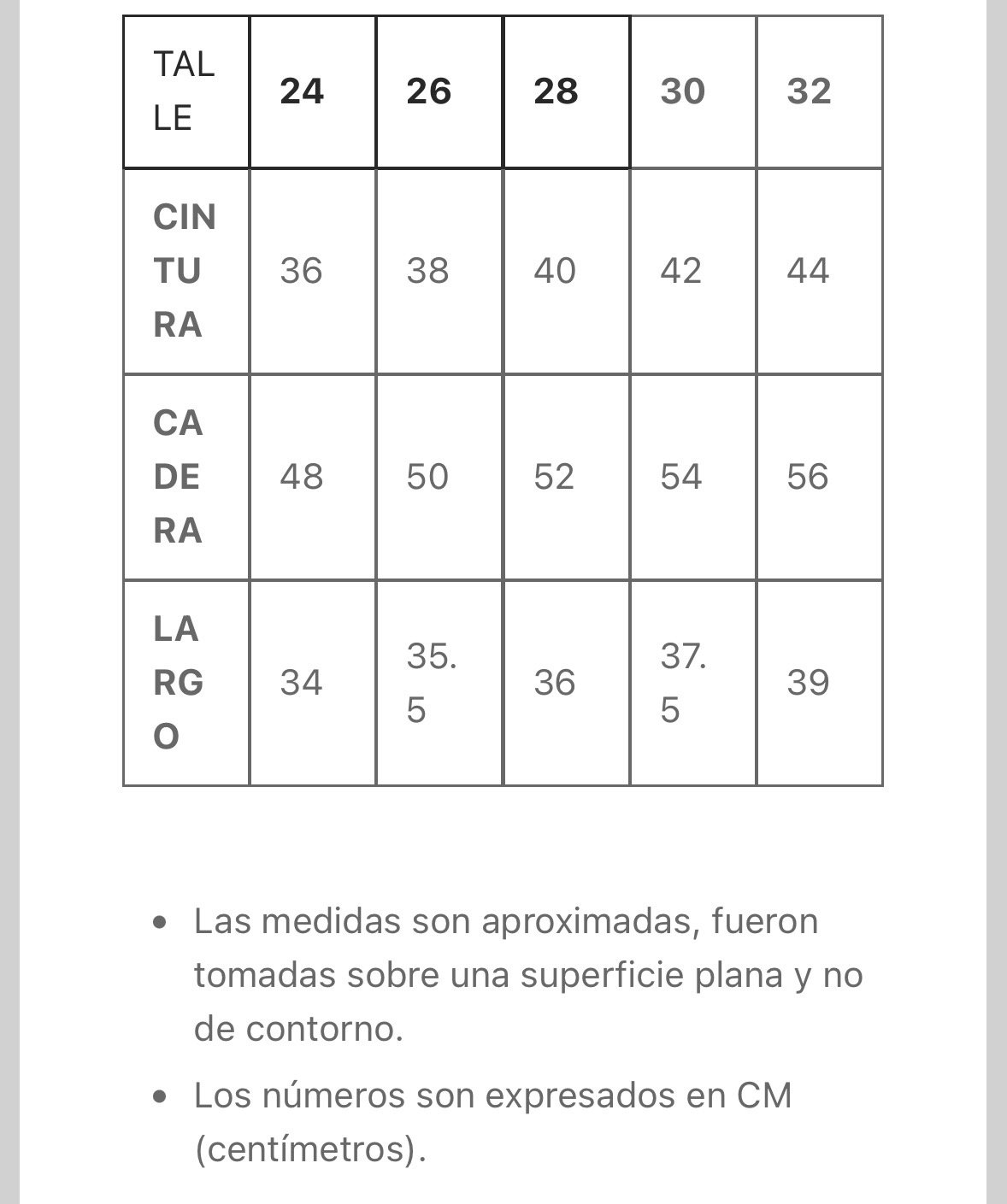 📏 Tabla de medidas aproximadas en la última foto
