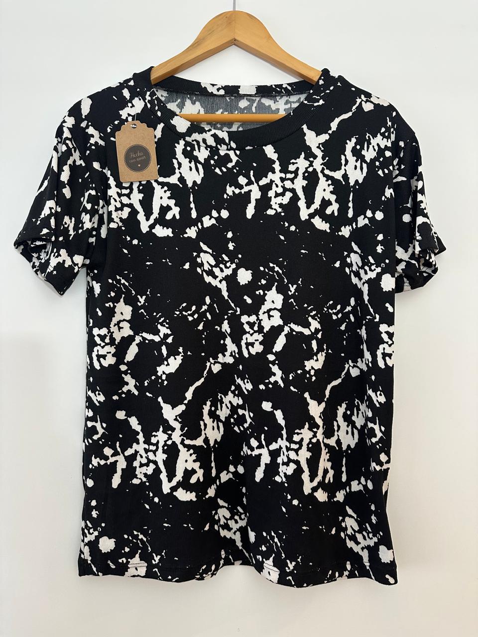 Remera confeccionada en morley elastizado con calce amplio y cómodo, ideal para un look relajado. Su estampa protagonista le da personalidad, mientras que la tela suave se adapta al cuerpo con facilidad.