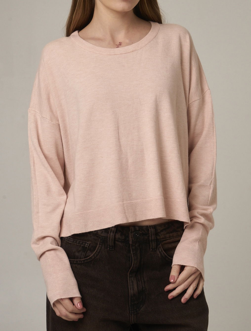 El básico que nunca es tan básico. Confeccionado en una trama suave y ligera, este sweater tiene un corte relaxed con largo ideal para looks casuales o sofisticados. Su diseño minimalista permite infinitas combinaciones: con jeans para el día a día o sobre un slip dress para un estilo más chic. Disponible en tonos neutros que son puro amor.