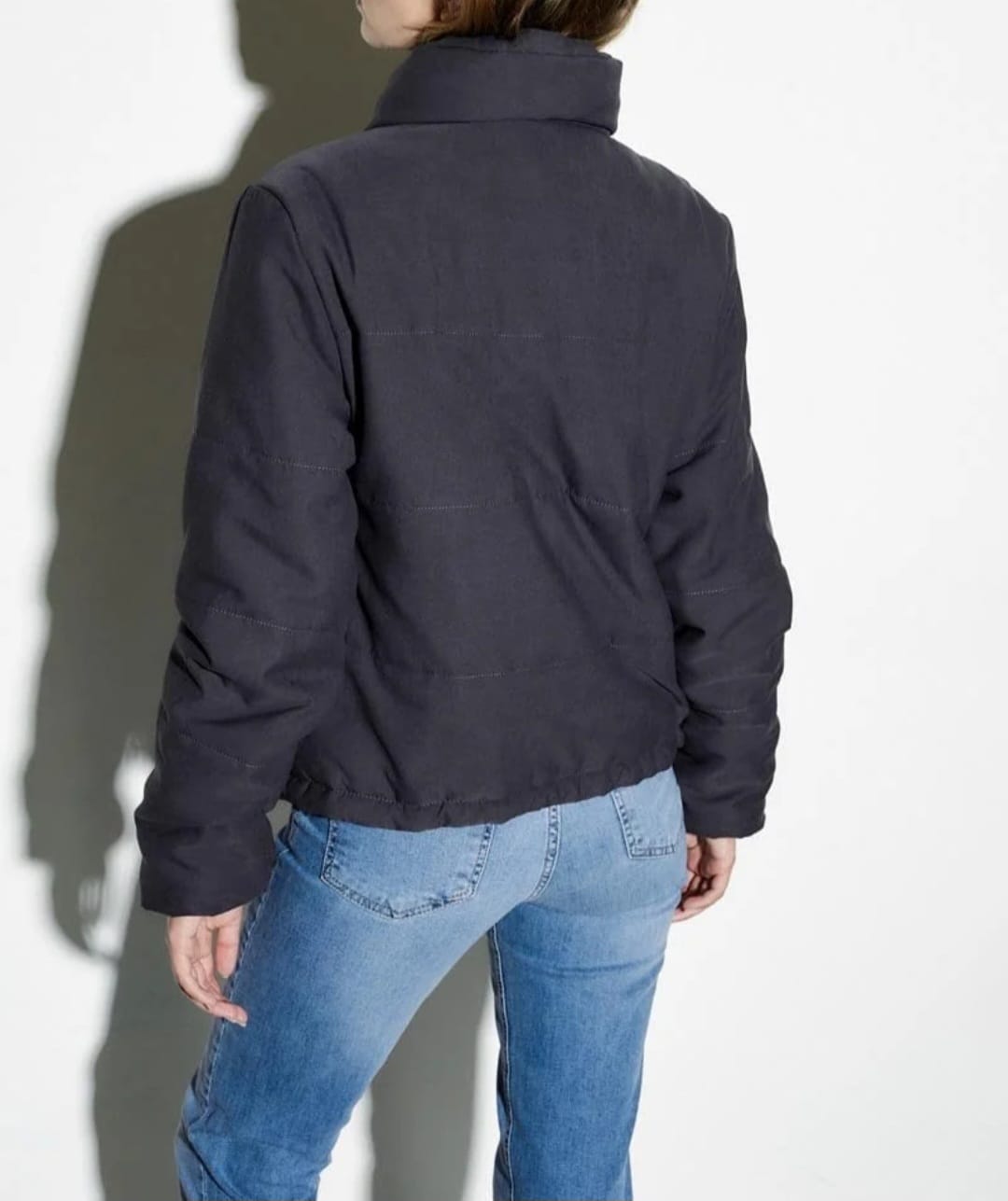 Campera de microfibra, semi impermeable. Toda forrada en su interior y bolsillos, en seda. Ajustable en cintura.