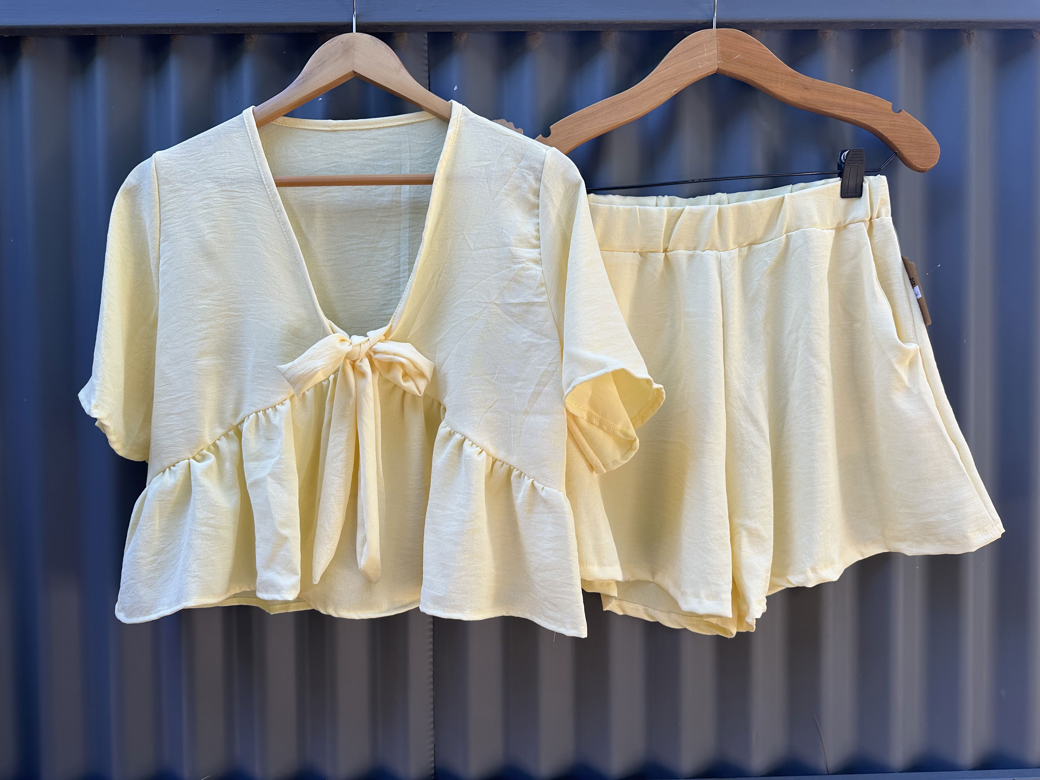 Suelta, fresca y con ese vuelo que enamora. Hecha en tela cey liviana, tiene lazo delantero y volados que le dan movimiento y un aire romántico sin perder simpleza. Ideal para usar con el short a juego (short Dafne) o con jeans de tiro alto.