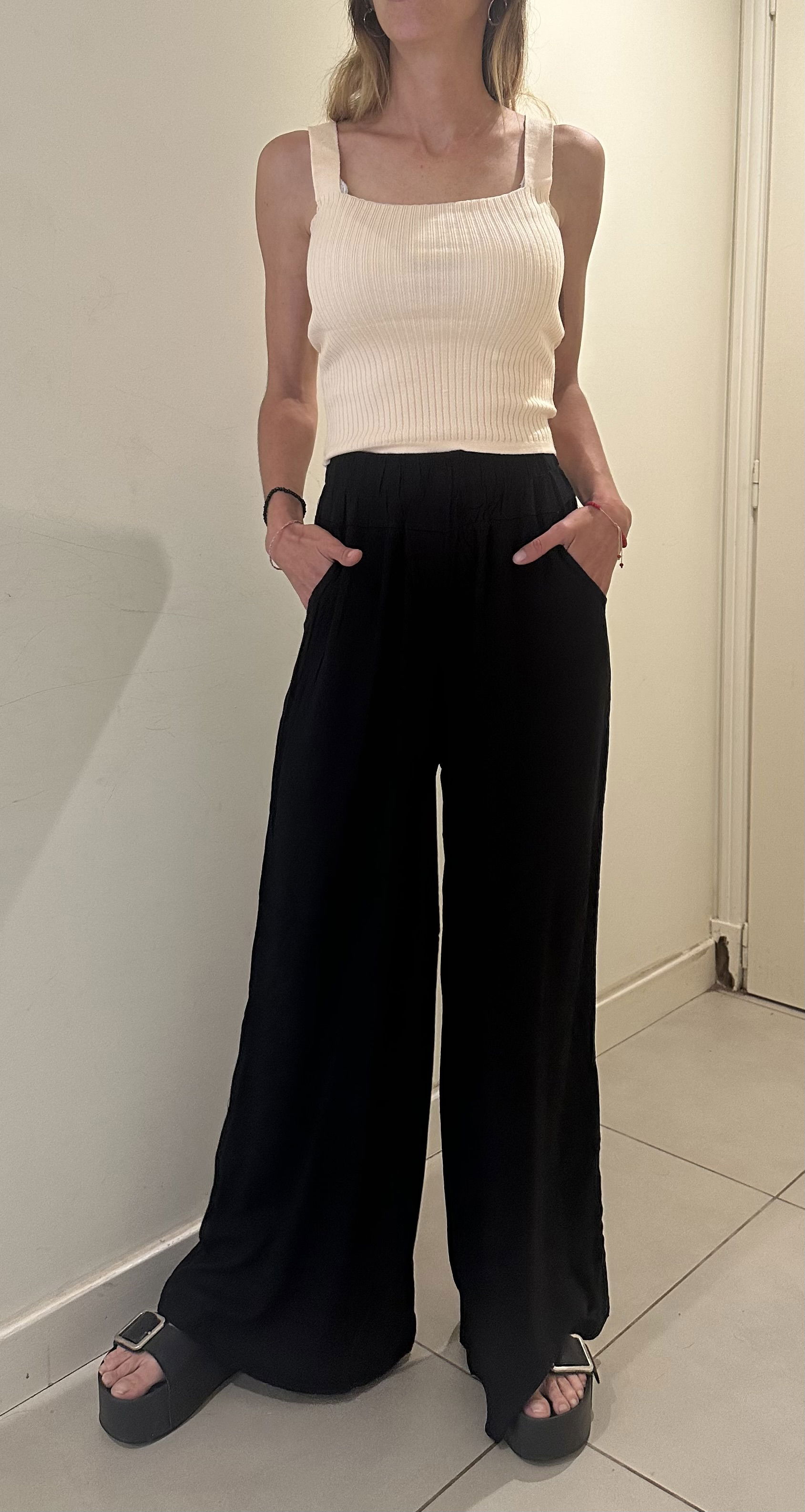 • Tu nuevo pant favorito! ❤️ Maxi palazo de lino con spandex, MEGA CÓMODO Y FRESCO! Con bolsillos y elástico ancho en la cintura, tiene una caída hermosa! Talle 1 al 6