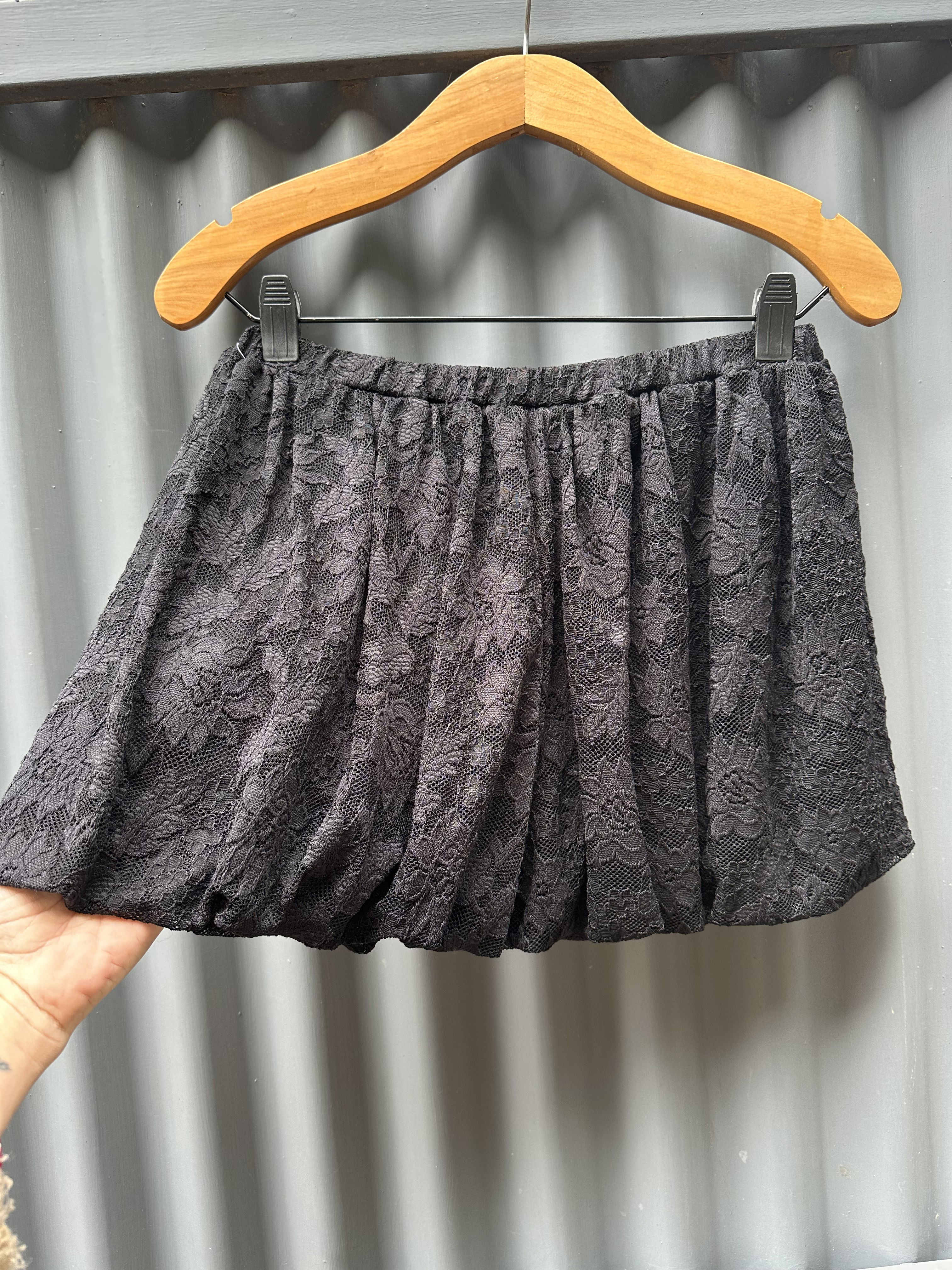 Pollera corta con vuelo, confeccionada en encaje floral suave. Cintura elastizada que se adapta perfecto al cuerpo y un movimiento hermoso al caminar.