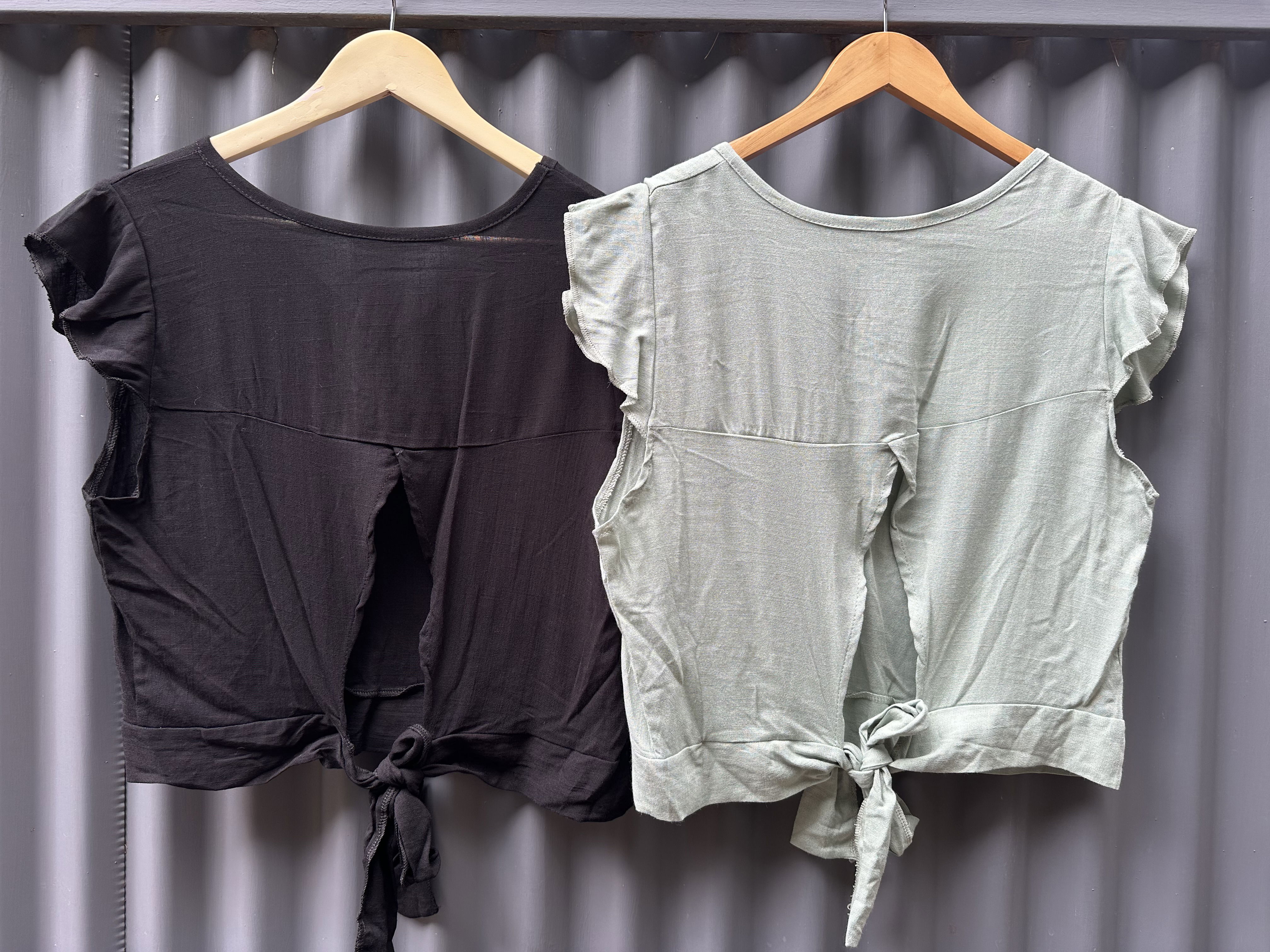 Remera de lino con abertura en la espalda y lazo para atar.
